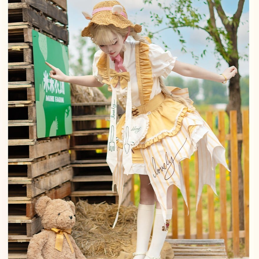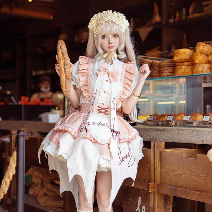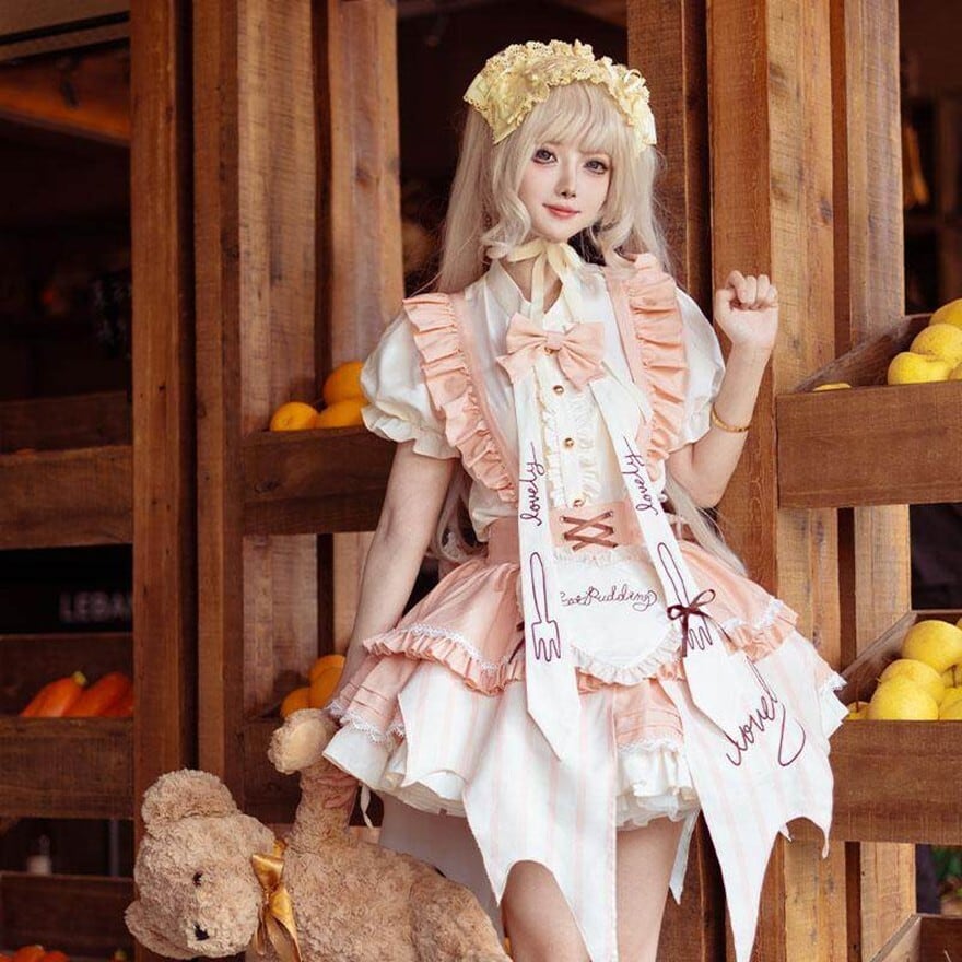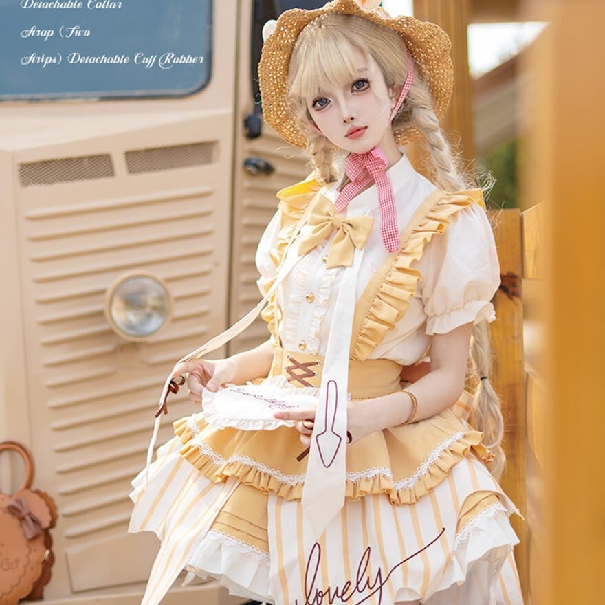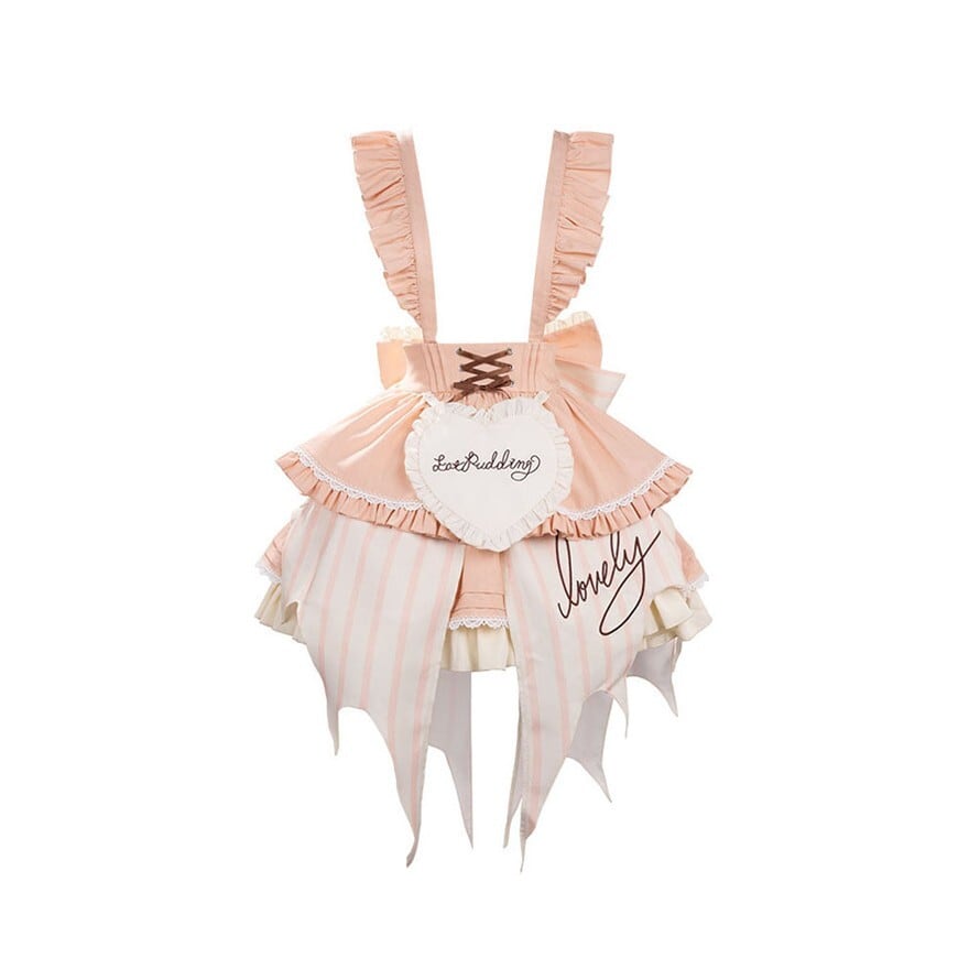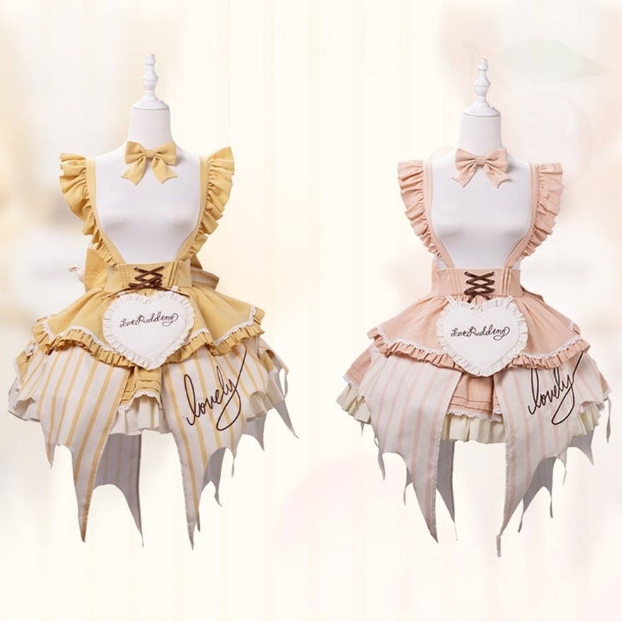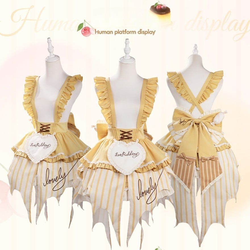 甘いプリンをイメージした、ストライプ柄が目を惹く甘ロリ風エプロンスカートです。