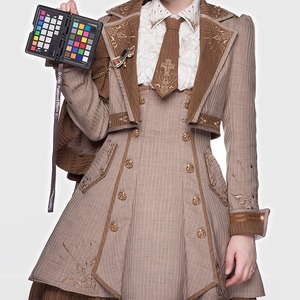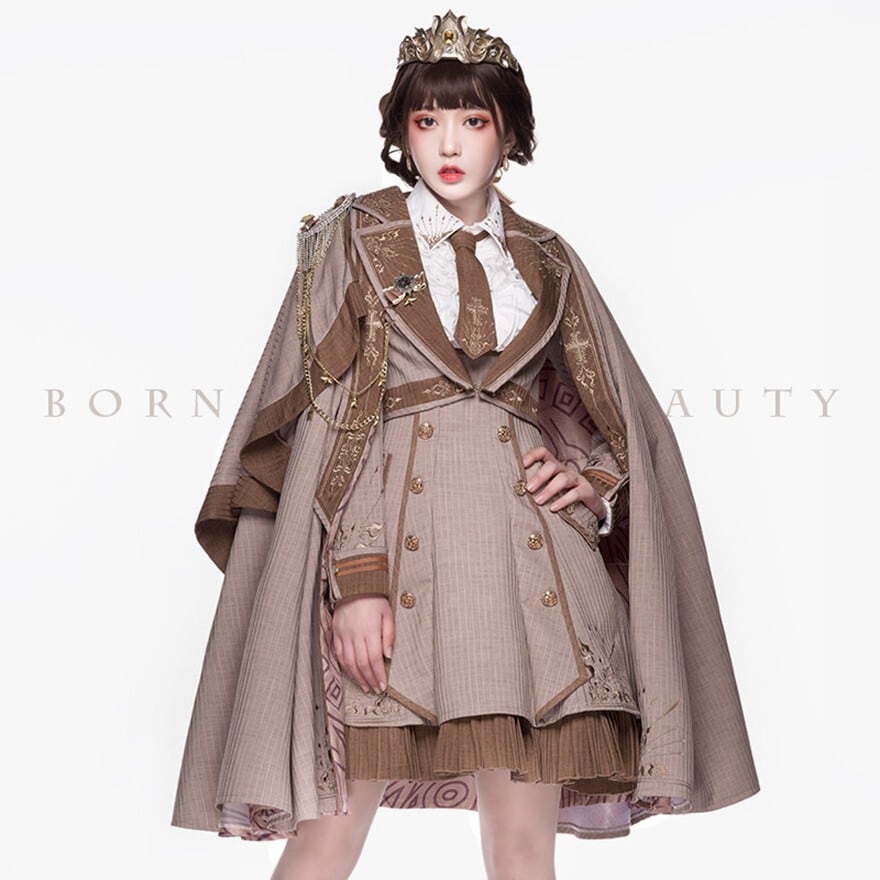 ウエストラインを強調するダブルボタンの配置と、ふんわり広がるスカートのシルエットにより、女性らしさを損なわずに士官風スタイルを楽しめます。 ブラウンカラーが落ち着いた印象を与えるため、派手すぎず上品にまとまります。