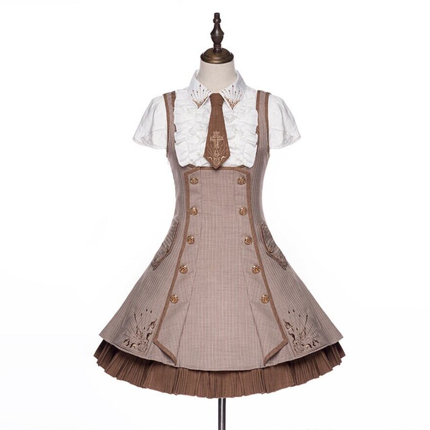 ブラウンを基調とした、気品漂う士官風デザインのジャンパースカートです。