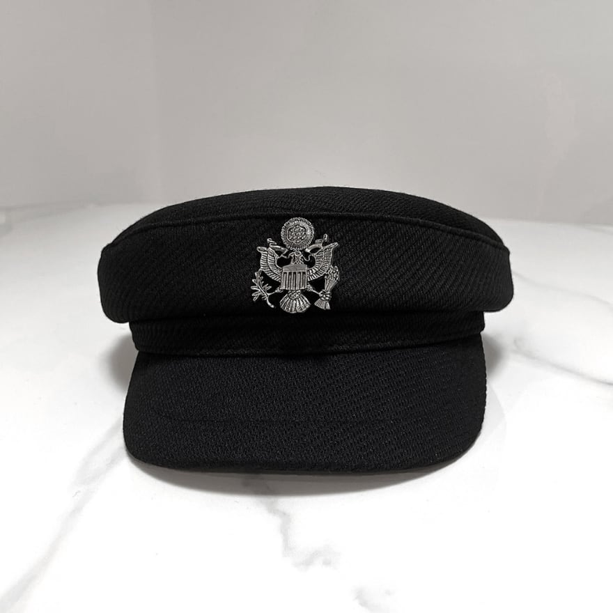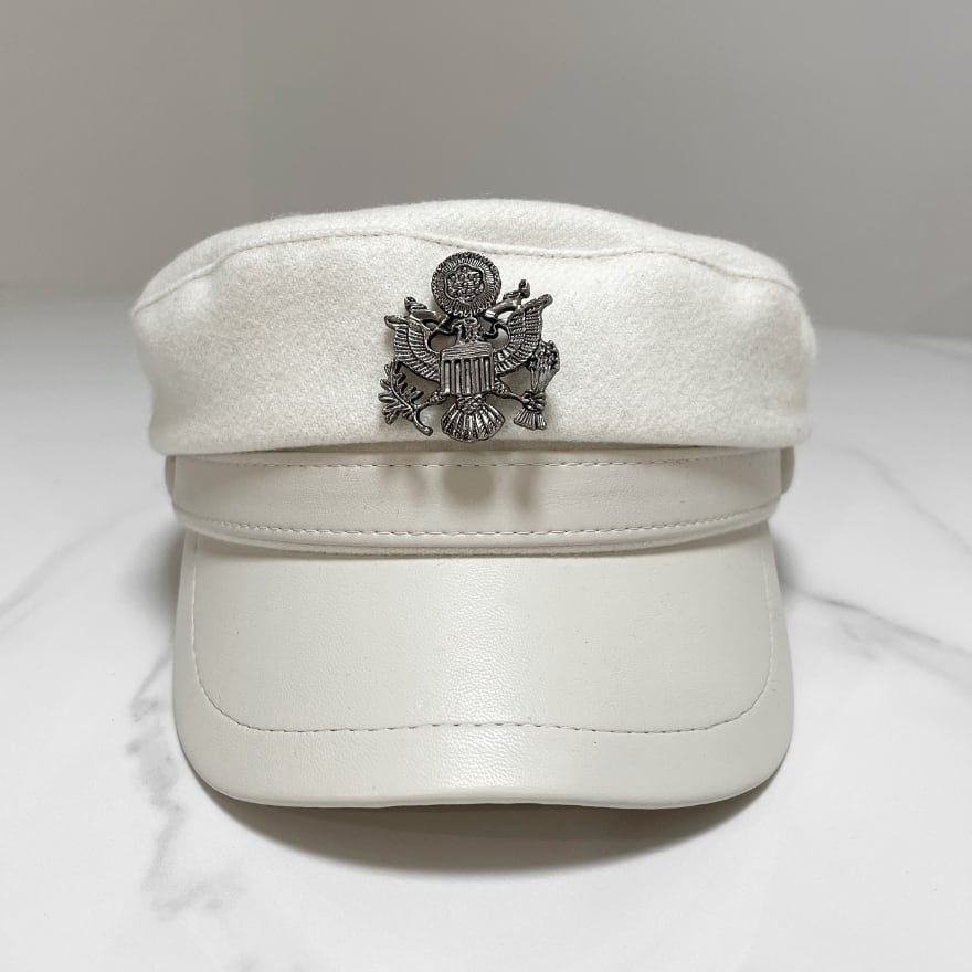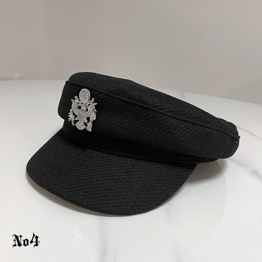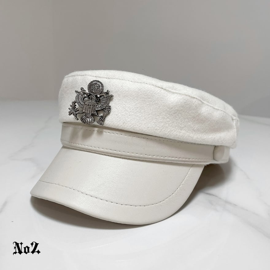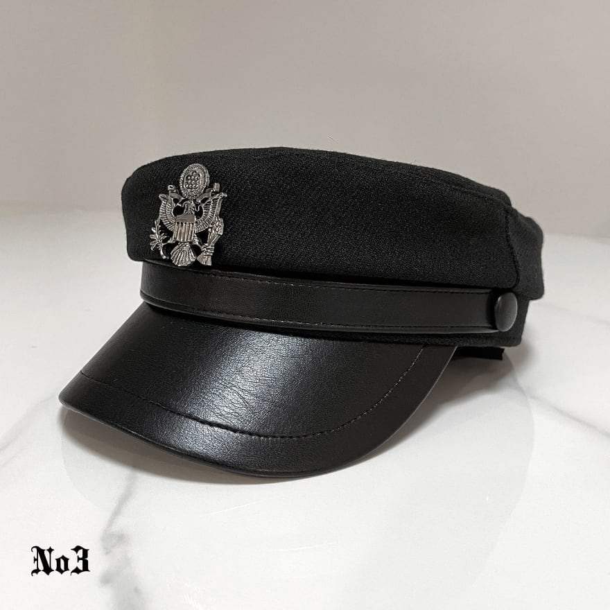 黒白デザインで合わせやすく、軍帽風の空気感を足したい日の帽子として使いやすい一品です。