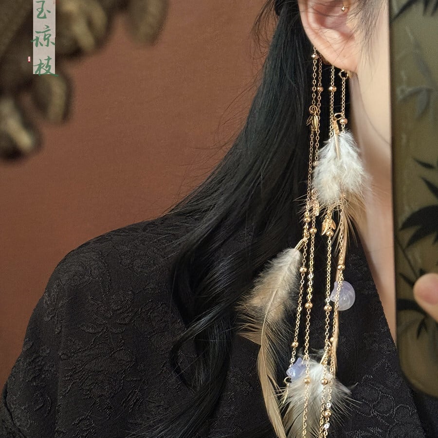 中華ロリータの装いに、気品のある華やかさを添える単品タイプの耳飾りです。繊細なゴールド装飾にロングチェーンの揺れ感を重ねたデザインで、顔まわりをすっきり見せながら印象をぐっと深めてくれる仕上がりに。中華コーデや撮影スタイルを、上品に引き立てたい日に映える一点です。