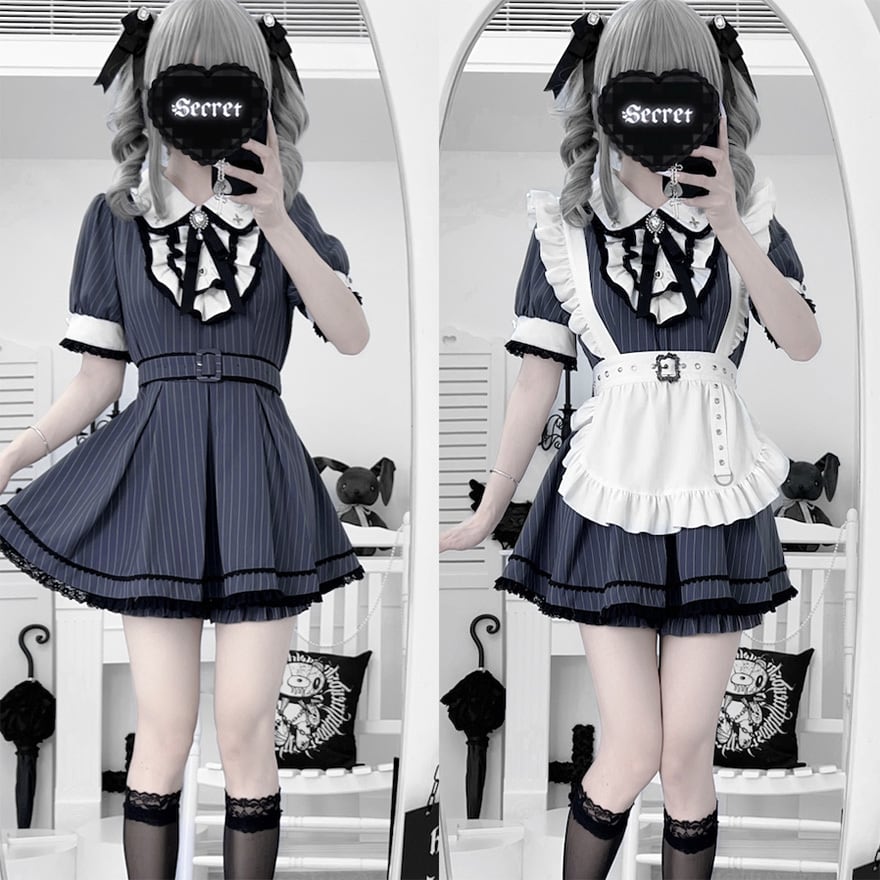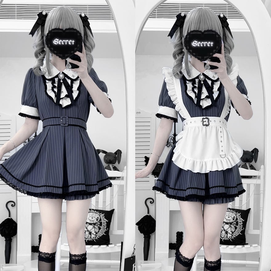 サブカル系(トップス、短パン、エプロンのセットアップ ※画像2枚目に基づき、エプロンは別売りの可能性があります)