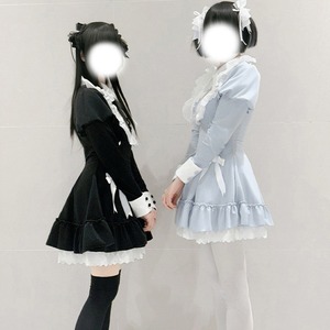 ベルベット調の質感と、裾に重ねられたフリルやレースが、地雷系特有の可愛らしくも毒のある世界観を演出します。