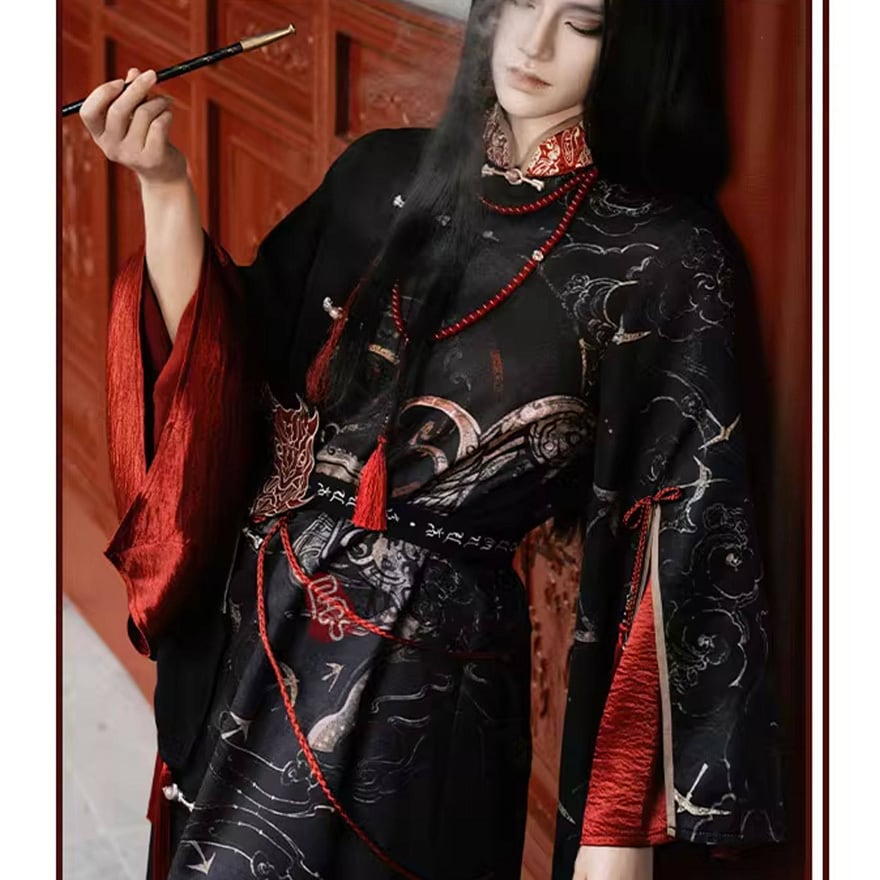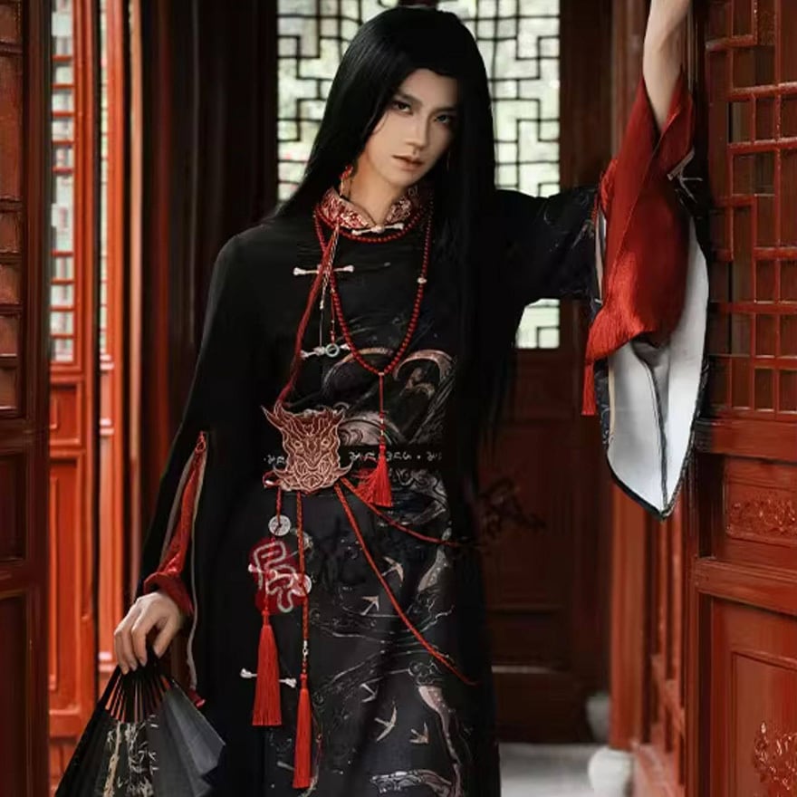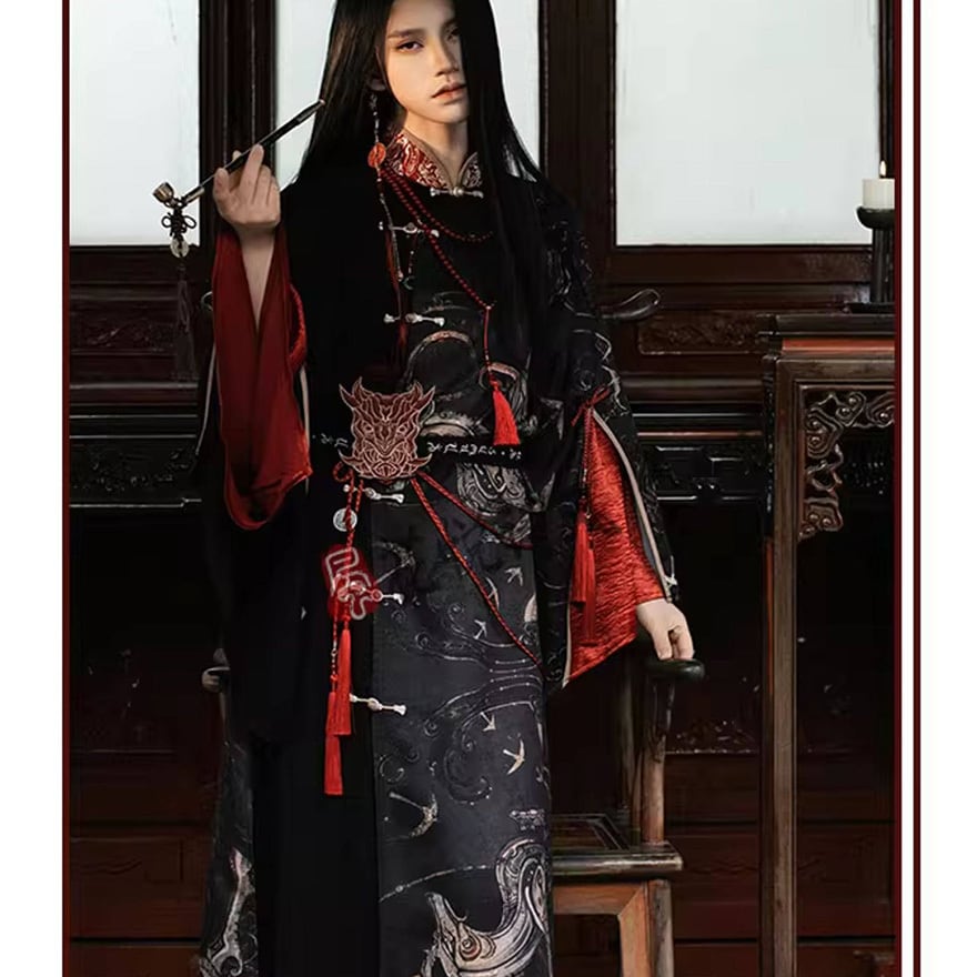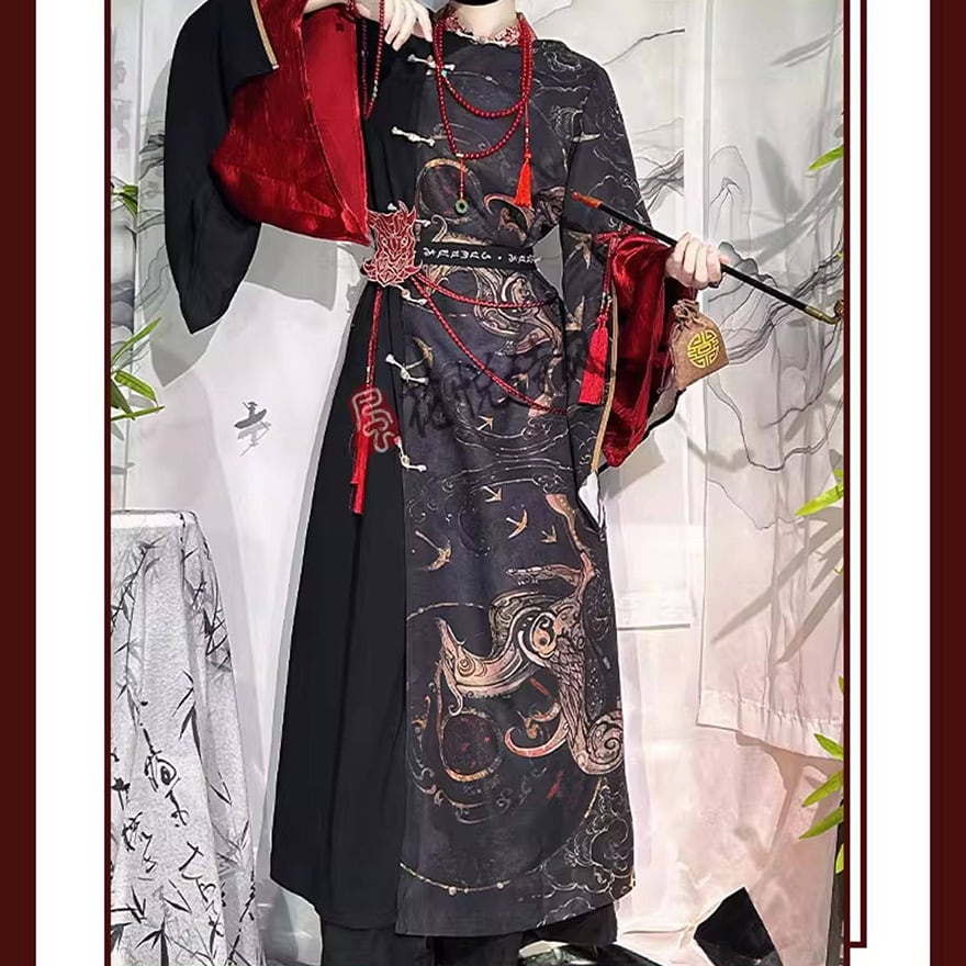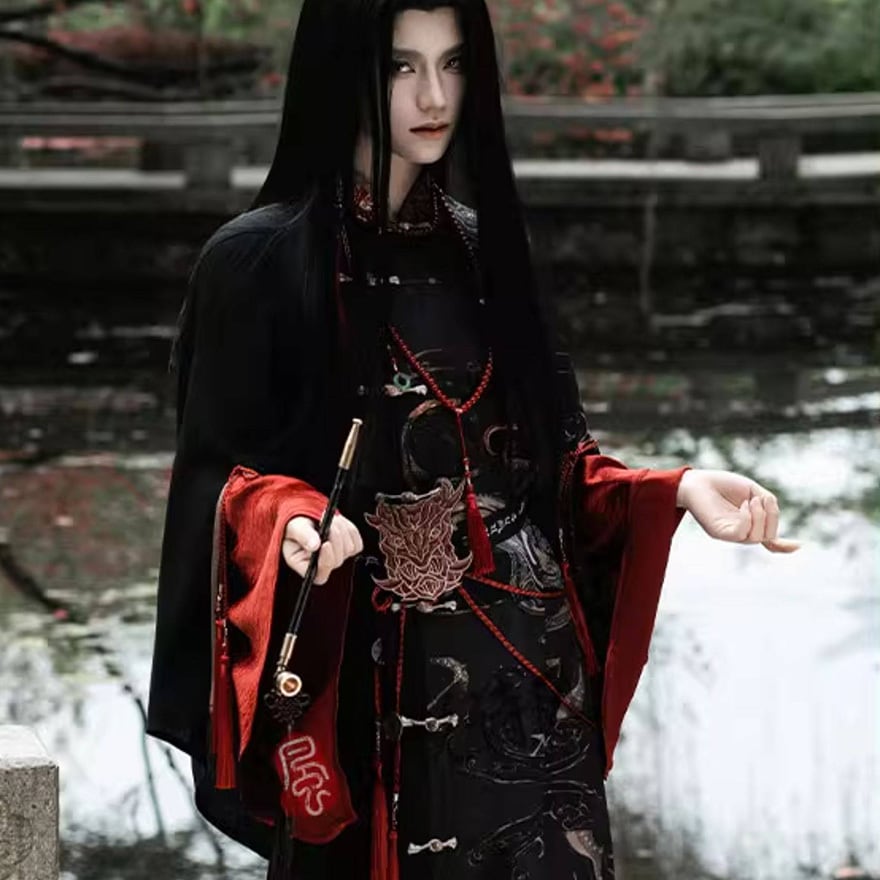 赤と黒を基調とした配色に伝統的な文様の刺繍やタッセルが施されており、コンセプトカフェの衣装やライブの参戦服、撮影用として適しています。