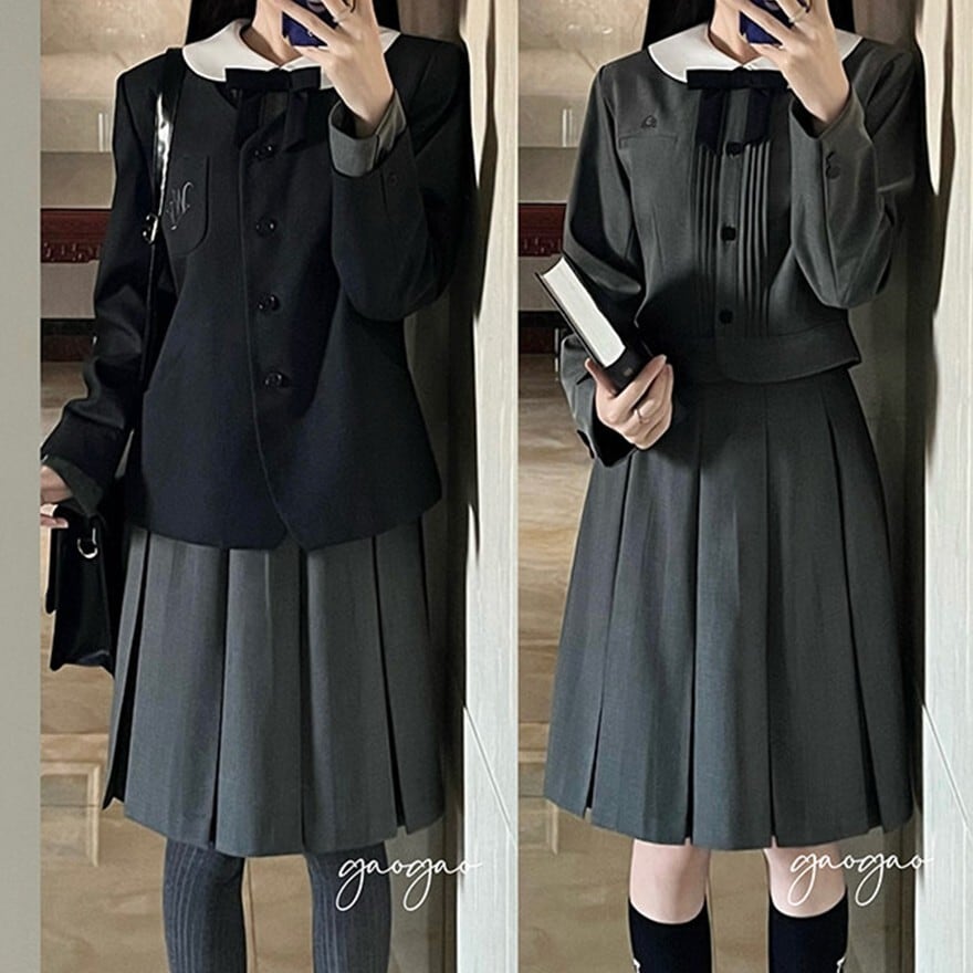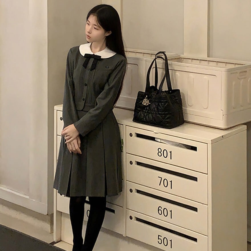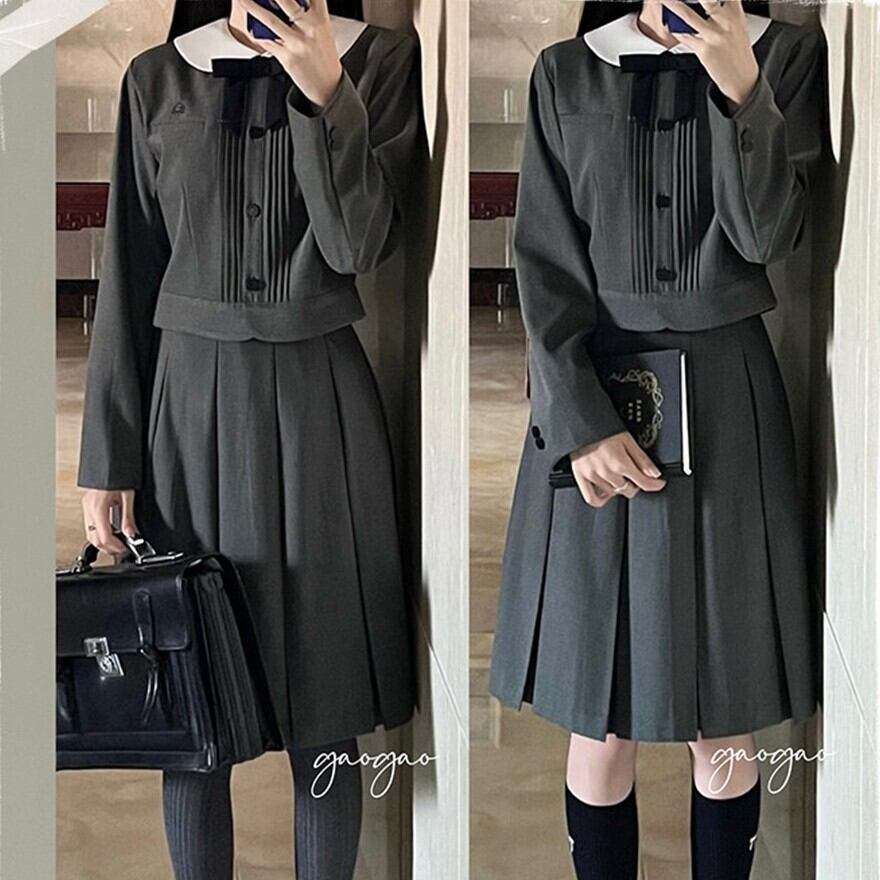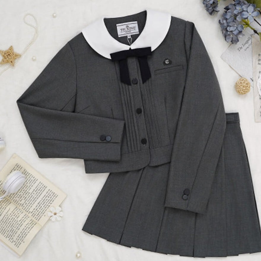 入学式対応 クラシカル 控えめセットアップ 丸襟 リボン付き|長袖ジャケット+58cmプリーツスカート|天使と悪魔