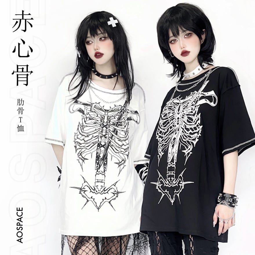 前面に大きく肋骨を模したスケルトン柄がプリントされています。