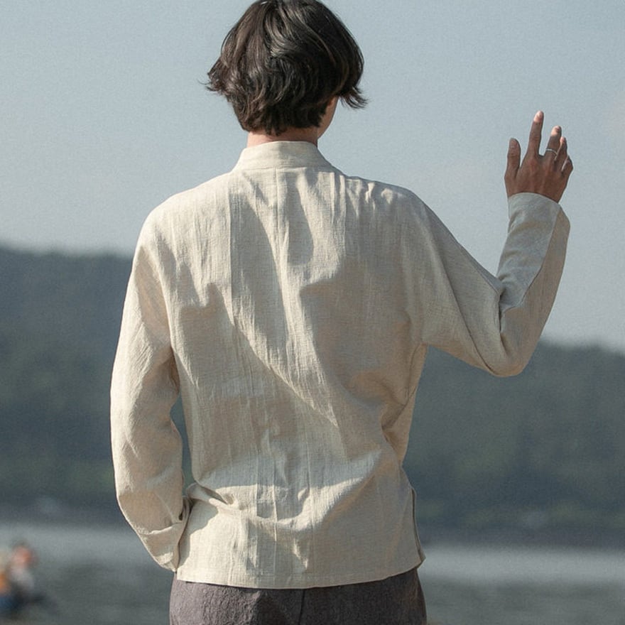 ・首元をすっきりと見せるチャイナカラー(立ち襟)