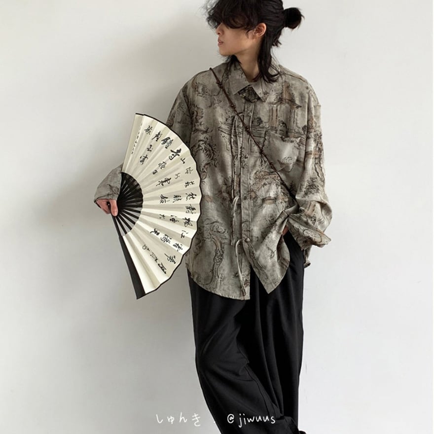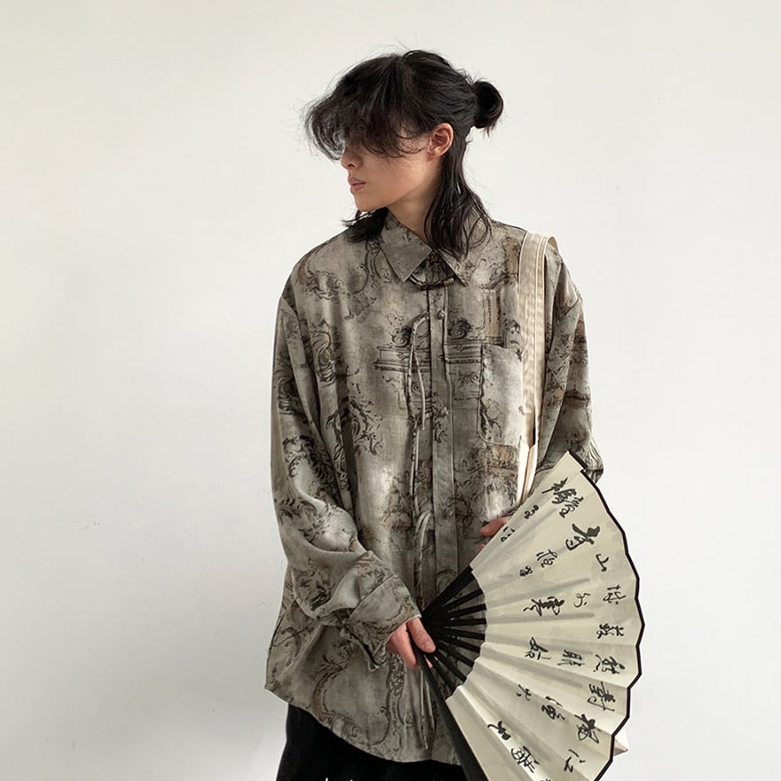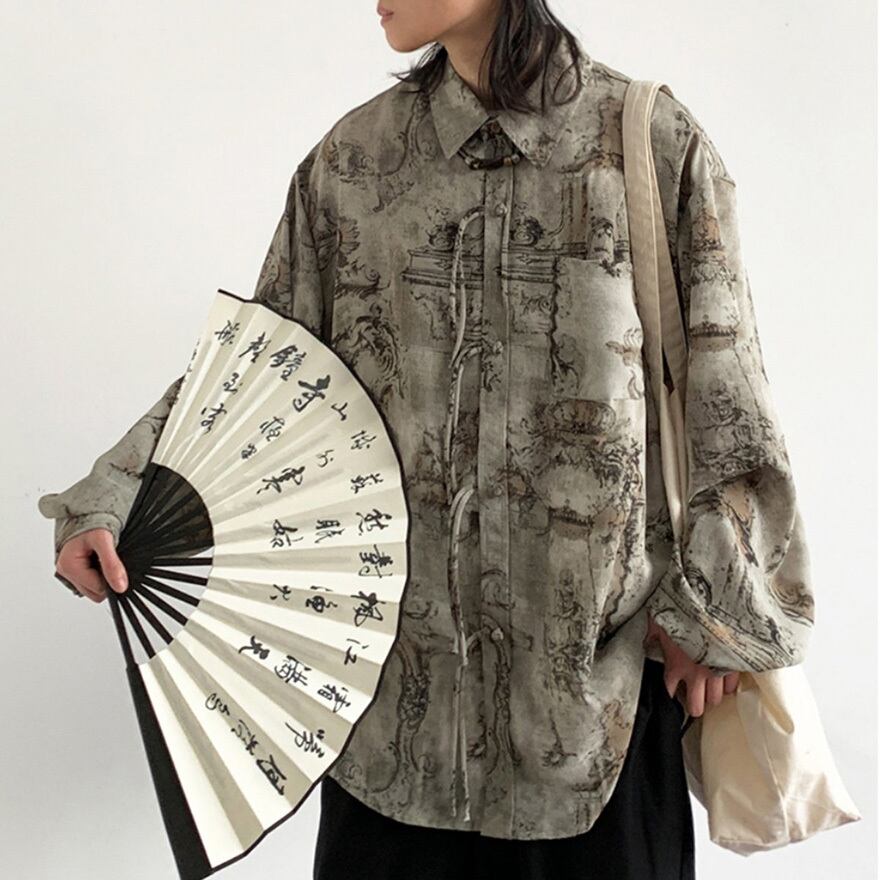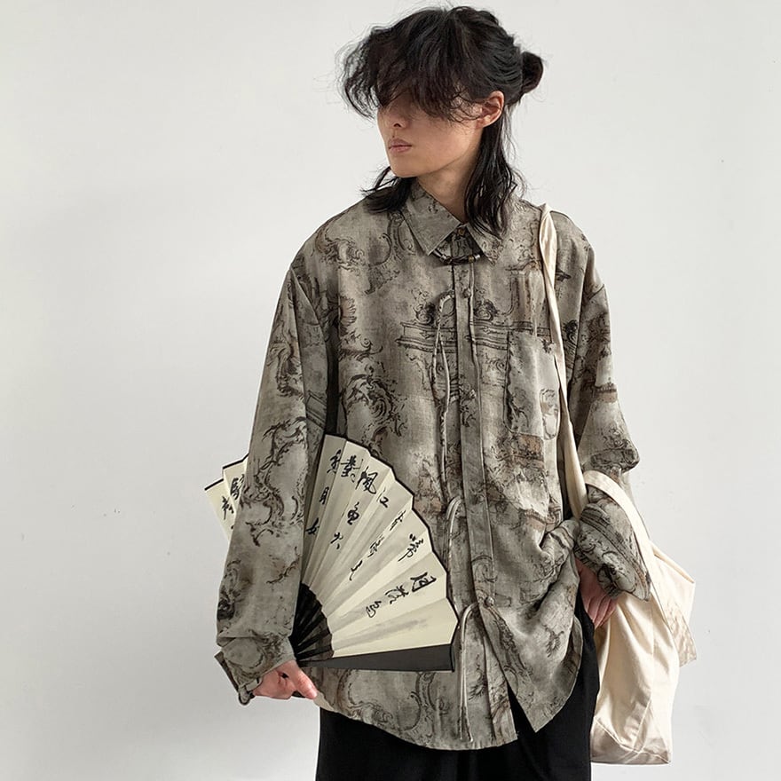 中華風のデザインを現代的なシルエットで楽しみたい方、人とは被らない個性的な総柄シャツを求める世界観重視の方。