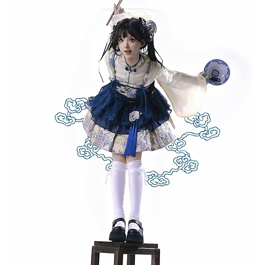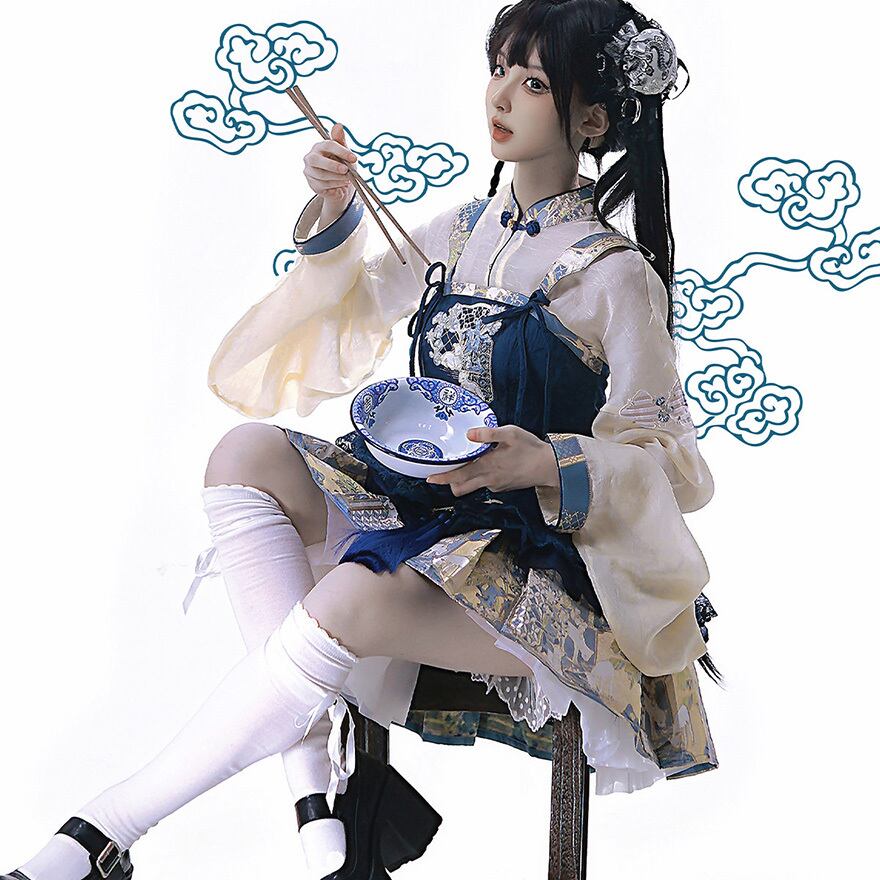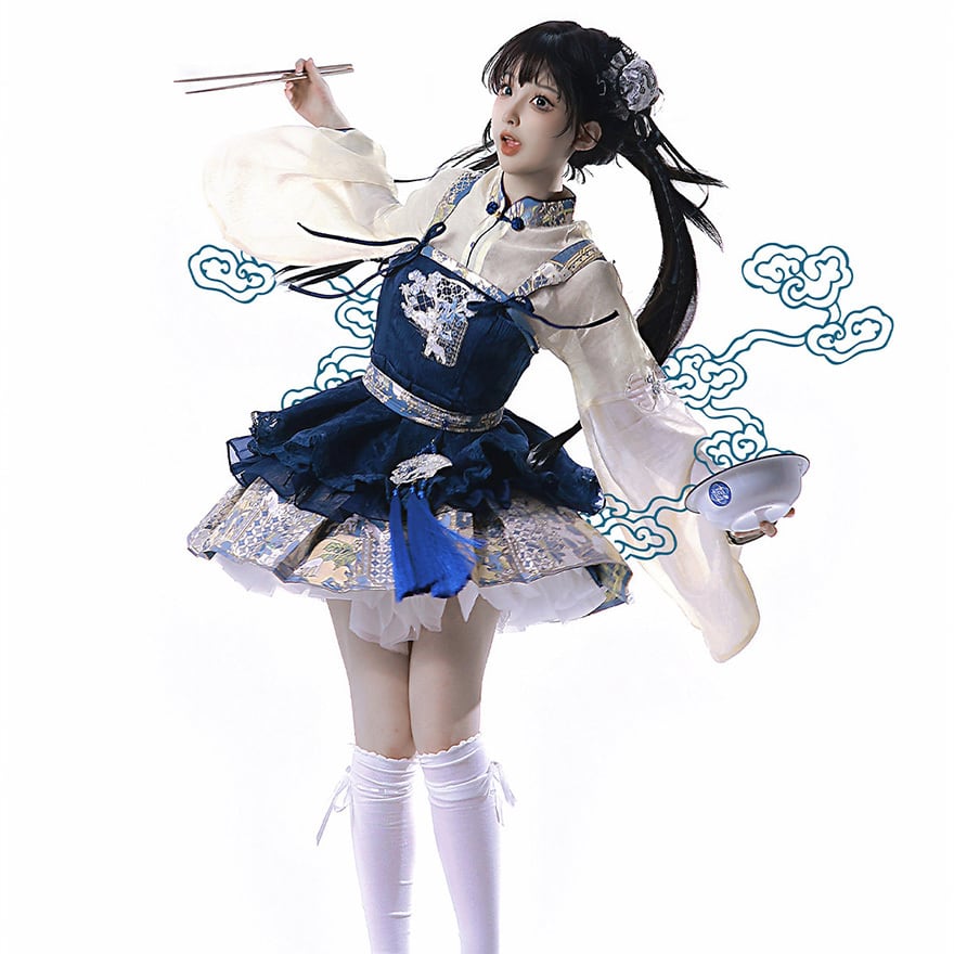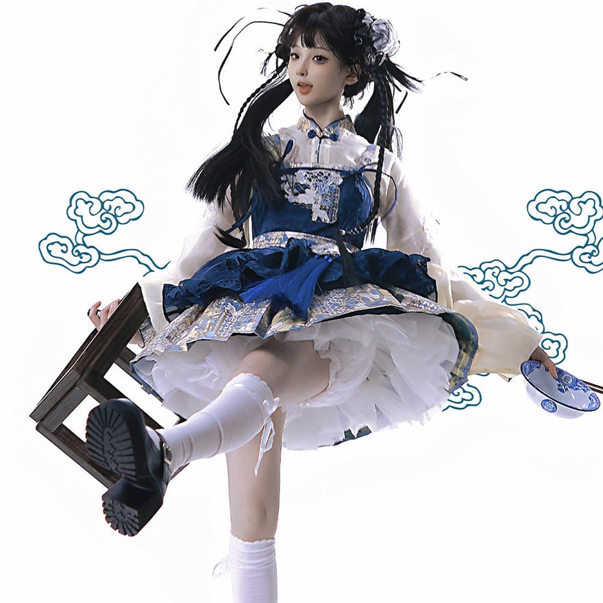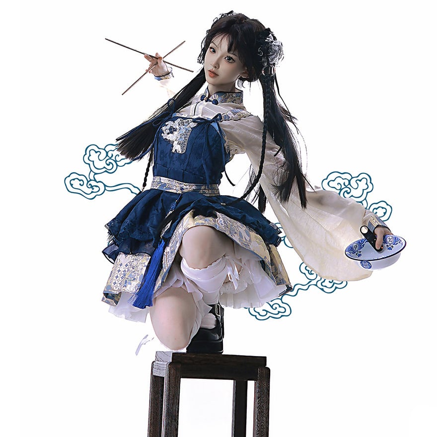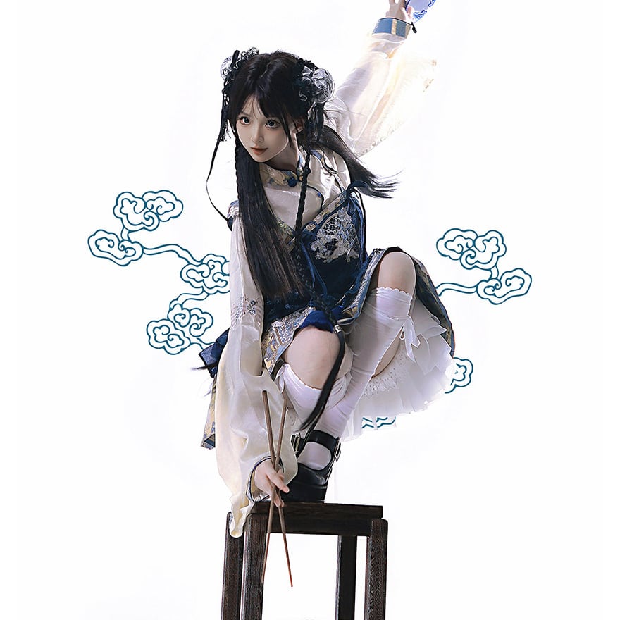 上衣とジャンパースカートがセットになっているため、着用するだけで調和の取れた中華ゴシックスタイルが完成します。