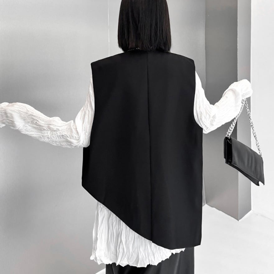 ゆったりとしたサイジングで、シャツやカットソーの上に重ねるだけで、独特な世界観を演出できるモードな一着です。