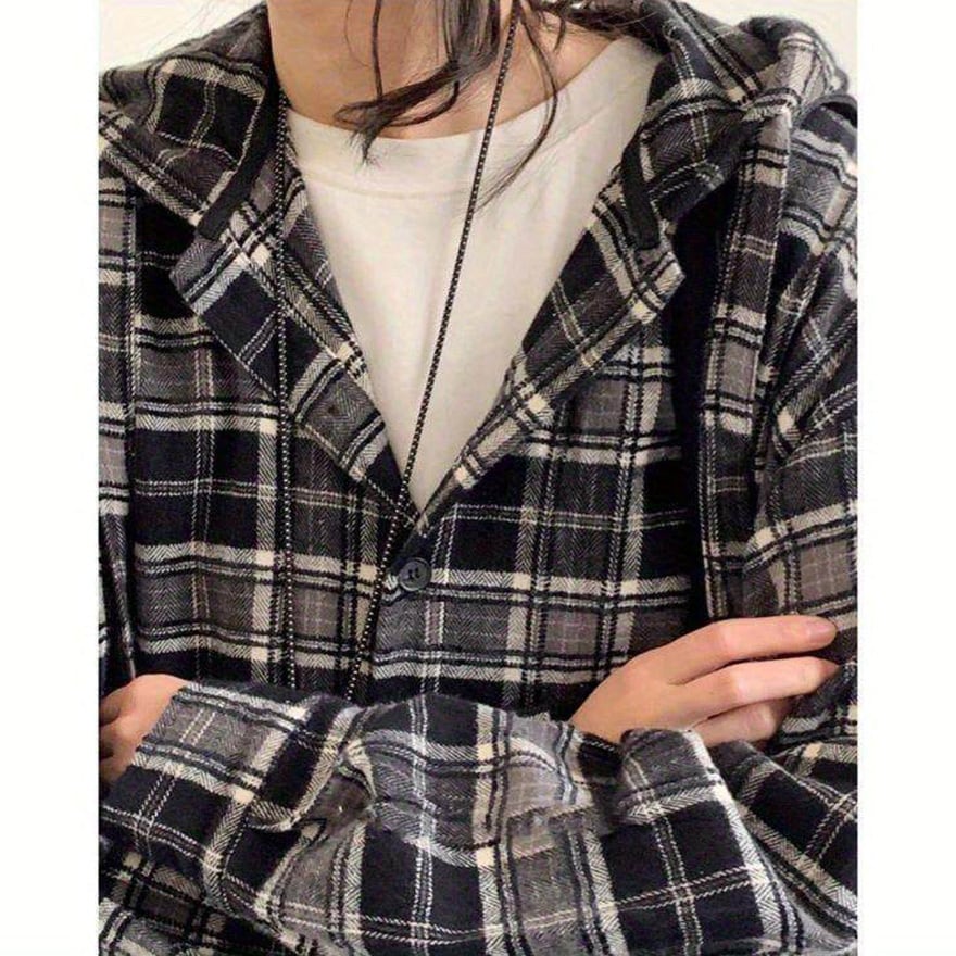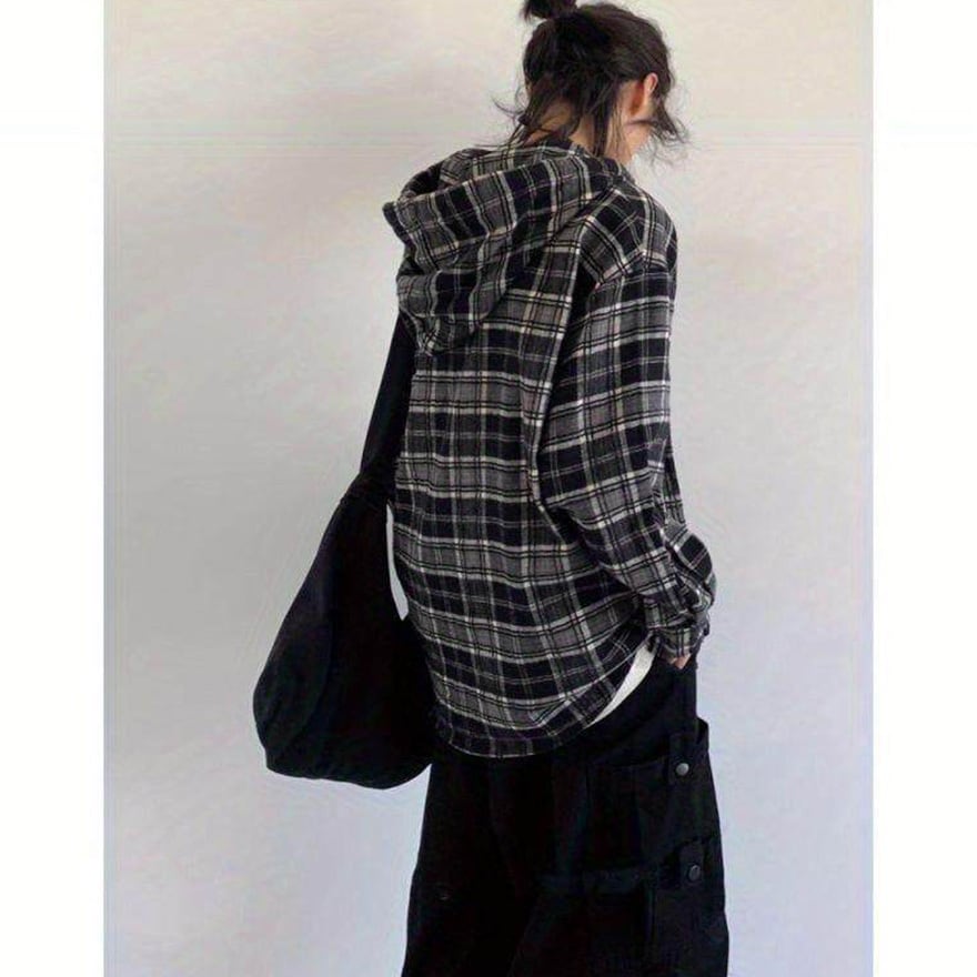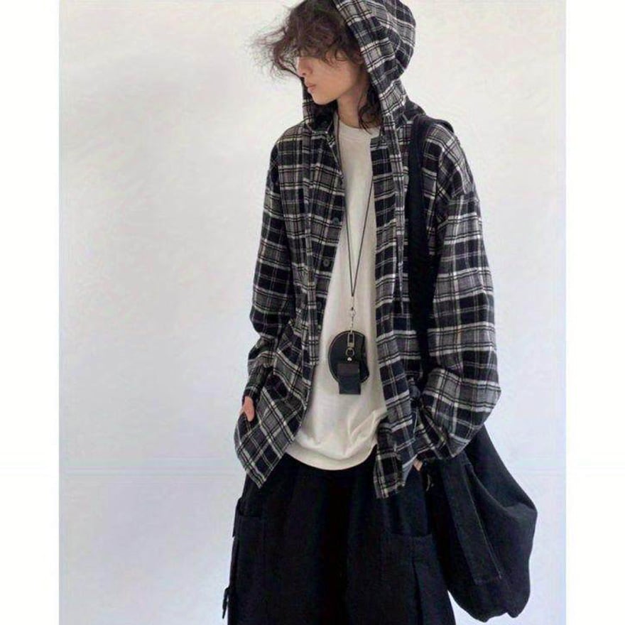 定番のチェック柄とパーカー形式のデザインにより、多様なインナーやボトムスと容易に組み合わせられます。