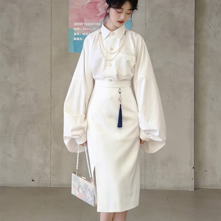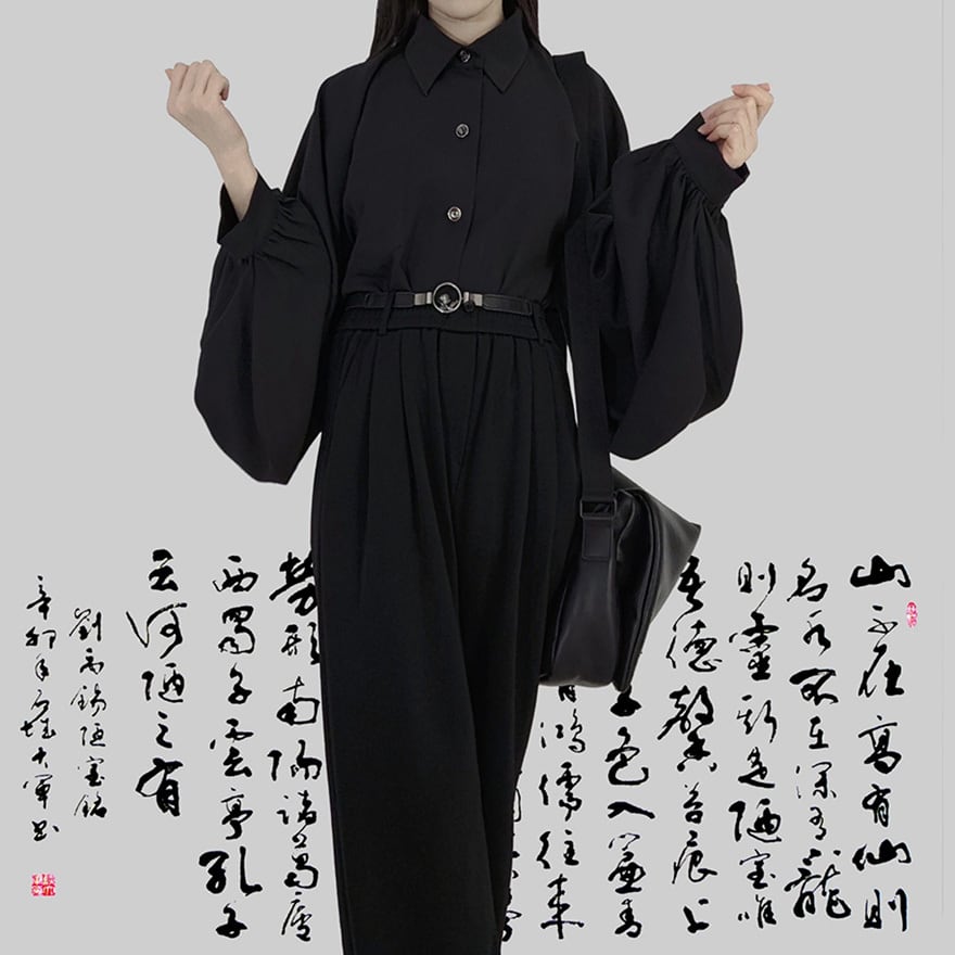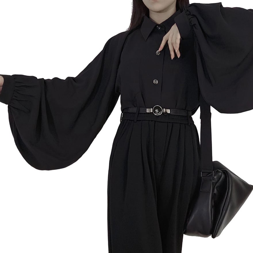 「初雲」シリーズの中華ゴシック改良琵琶袖シャツです。伝統的な琵琶袖を現代風にアレンジした広い袖が特徴で、男女問わず着用可能なユニセックスデザインです。れっど7,ブラック、ホワイト、グリーンの4色展開で、日常の通勤から正式な場、イベント衣装まで幅広く対応する、着回し力の高い一着です。