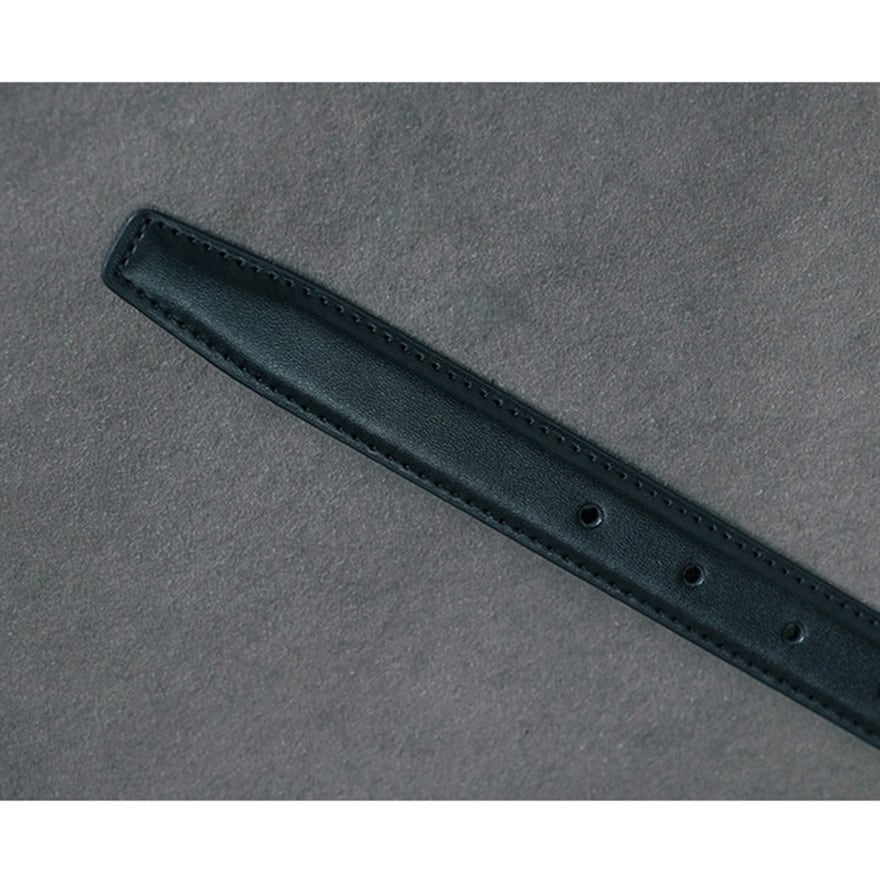 スリムな2.5cm幅のデザインが、ワンピースやシャツのシルエットを美しく引き締め、コーデ迷子になりがちな方でも瞬時に洗練された「闇かわ」スタイルを完成させます。