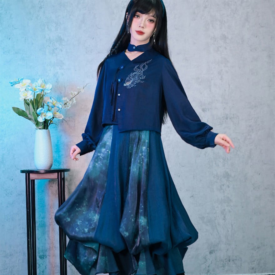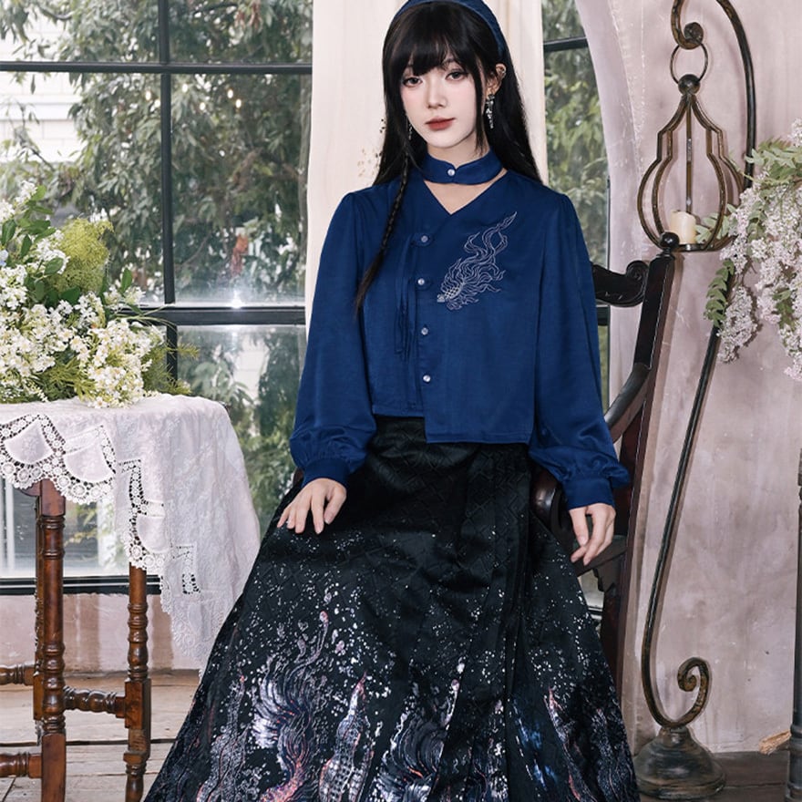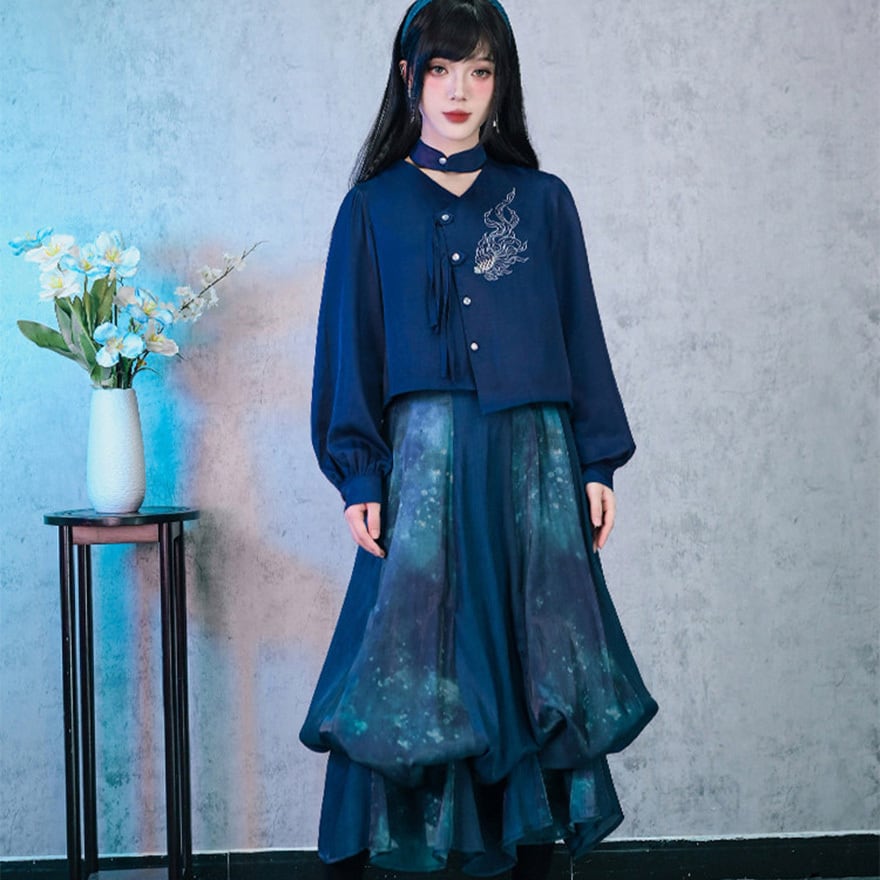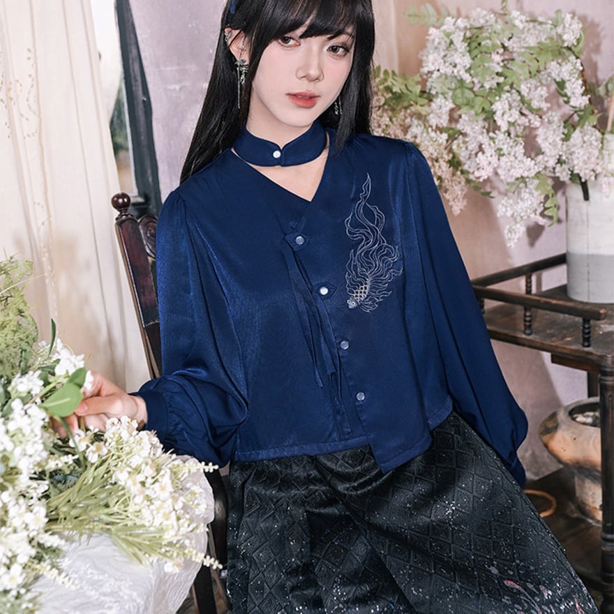 深海のような静寂を纏い、伝統を壊して己を表現する。古の刺繍と現代のサブカル精神が融合した、誰にも染まらない自分だけの世界を構築するための特別なピースです。