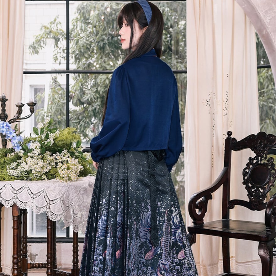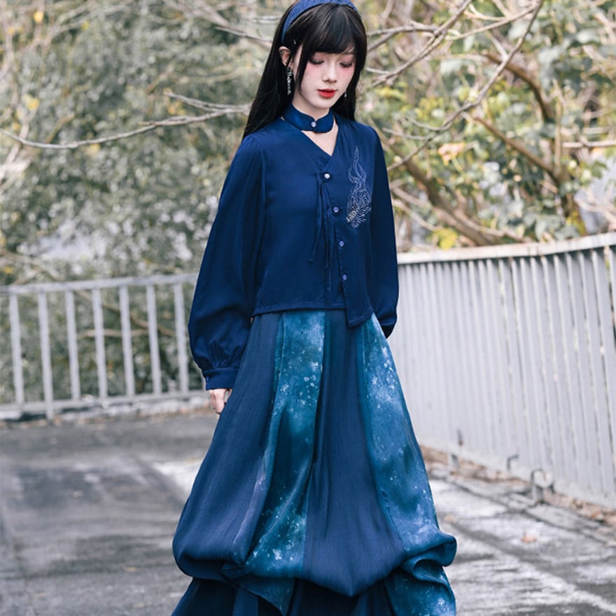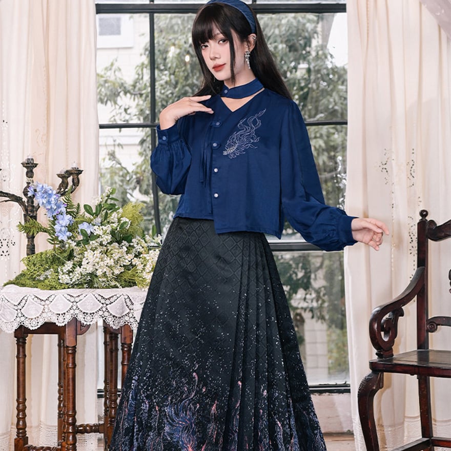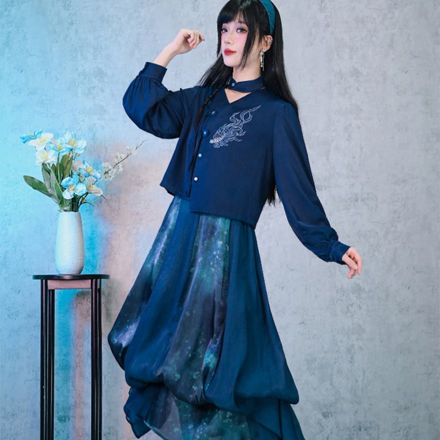 深海のような静寂を纏い、伝統を壊して己を表現する。古の刺繍と現代のサブカル精神が融合した、誰にも染まらない自分だけの世界を構築するための特別なピースです。