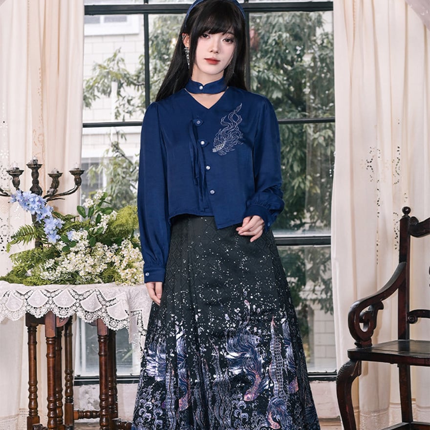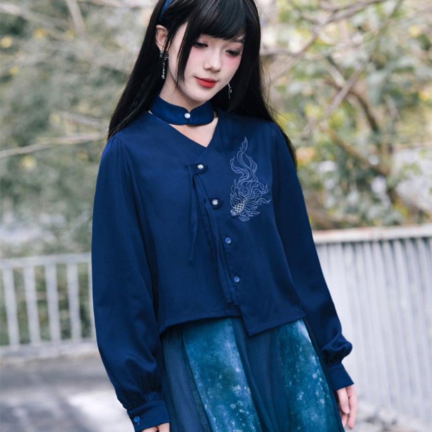 魚の刺繍と不規則な裾が特徴で、ライブ参戦やTikTok撮影に最適です。