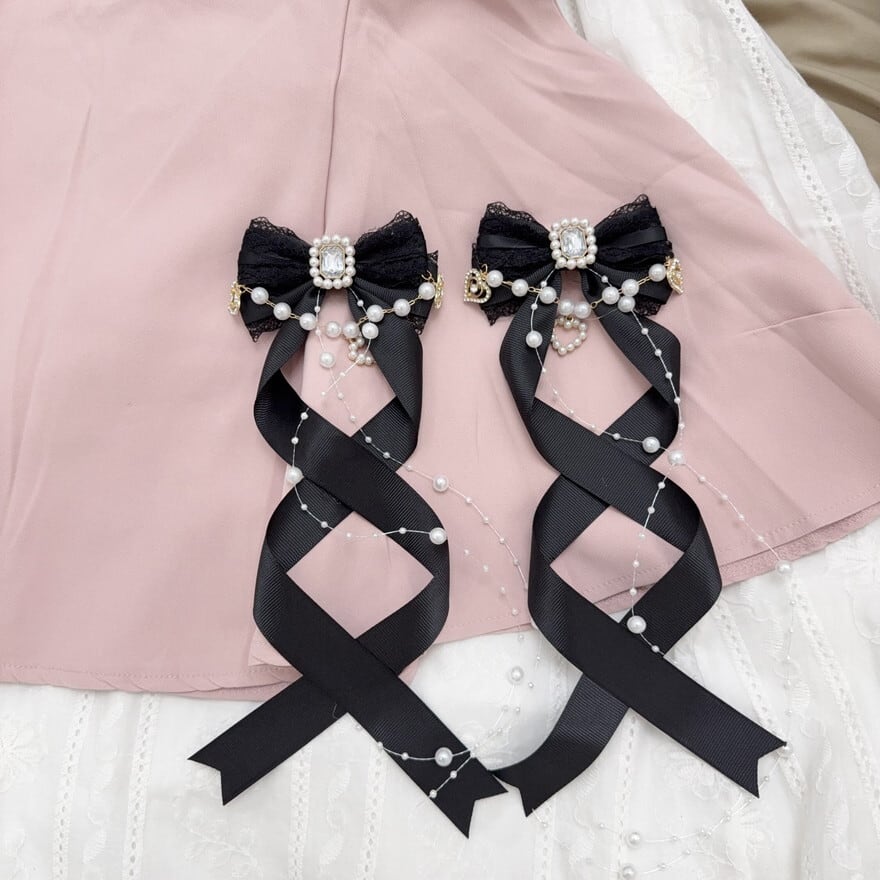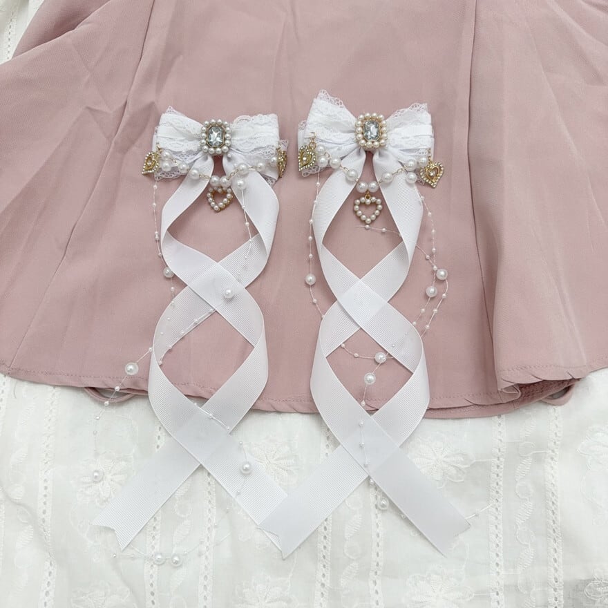 地雷系ファッション パールハート ツインテールリボン 2点セット 5色 ライブ参戦 推し活 ヘアクリップ|天使と悪魔
