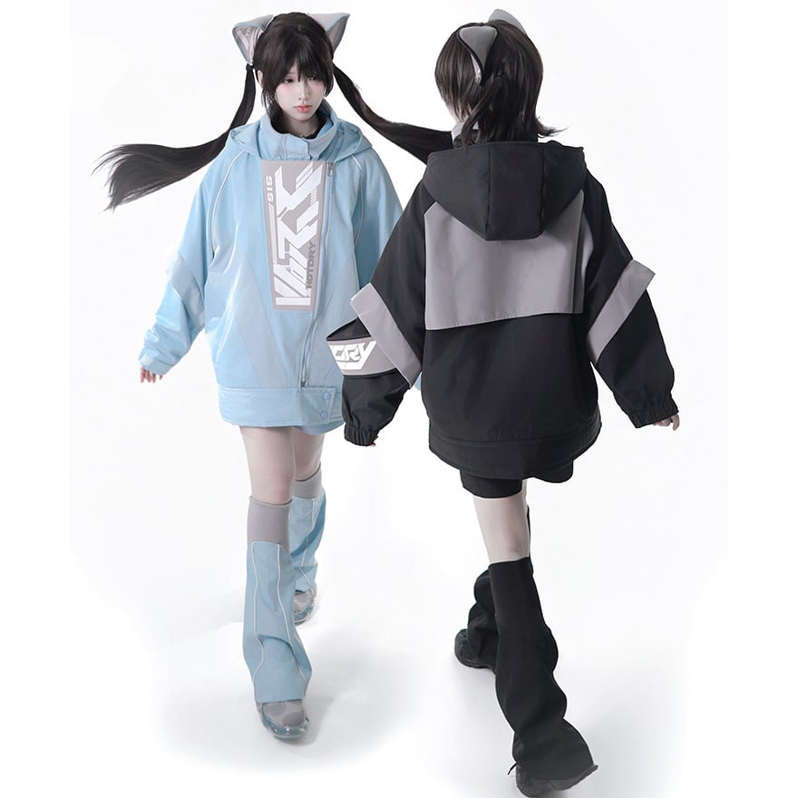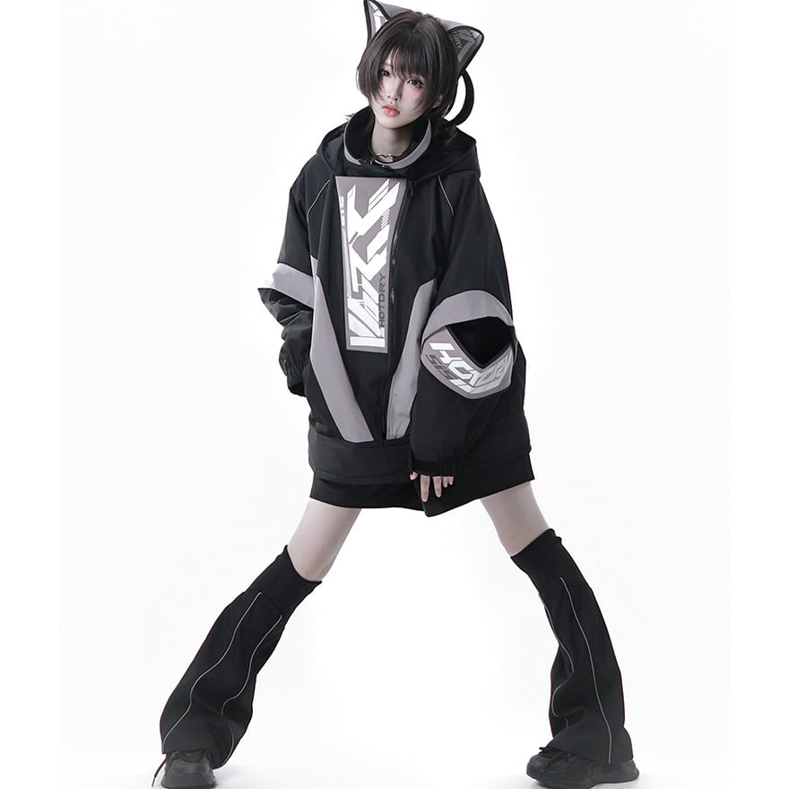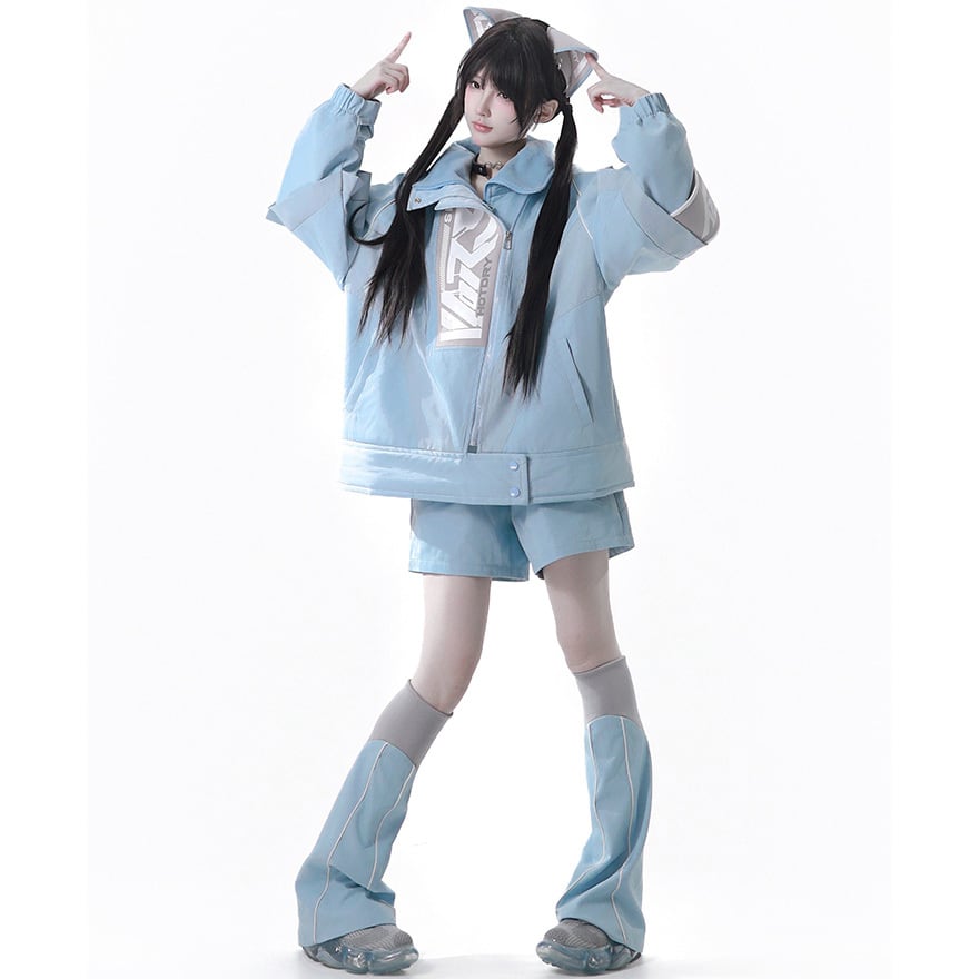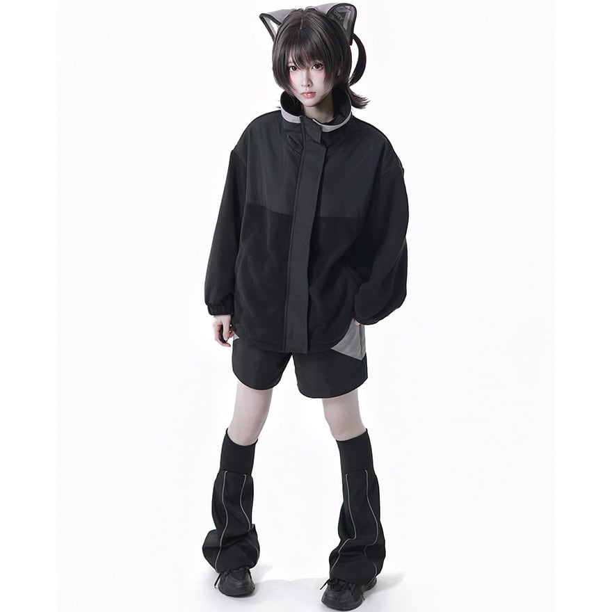 サブカル系 4点セットアップ(アウター、ショートパンツ、レッグカバー、猫耳ヘッドドレス)