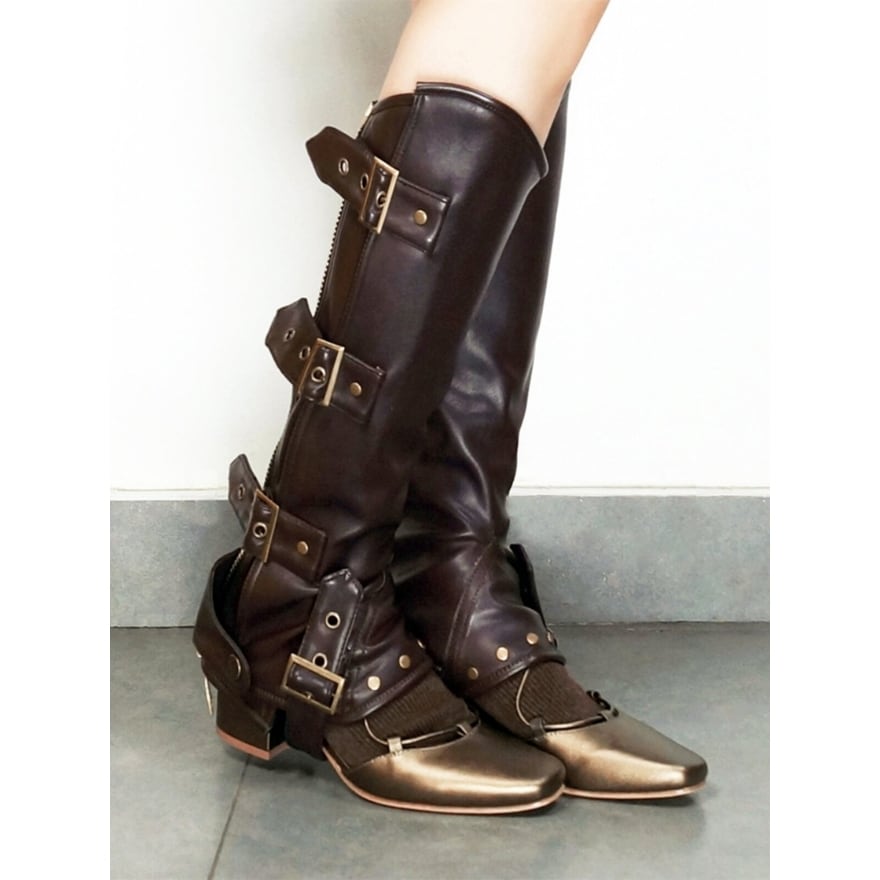 スチームパンク ベルトデザイン ブーツカバー レッグガード ブラウン ライブ参戦 コスプレ 撮影用|天使と悪魔