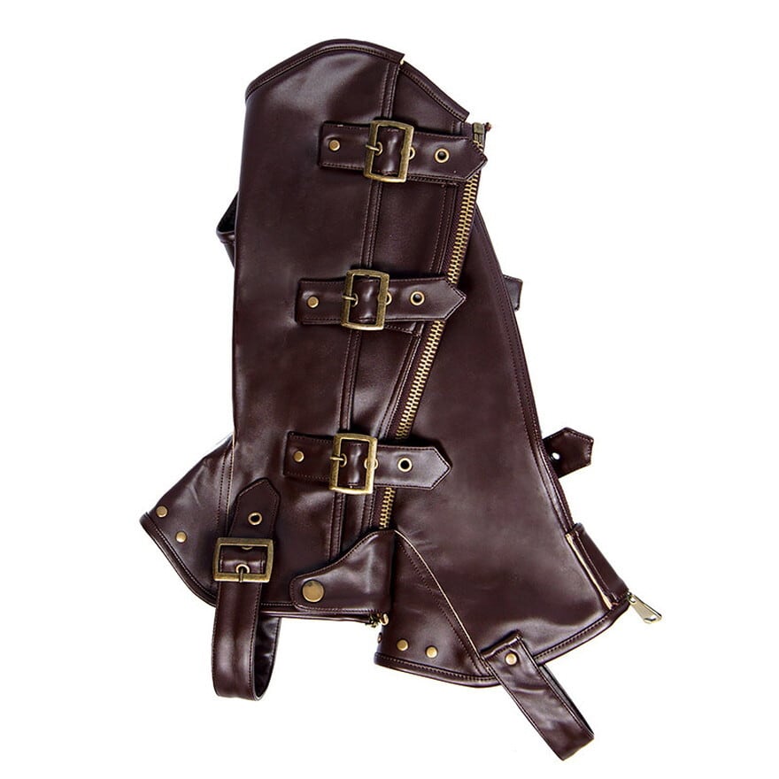ディテール:等間隔に配置された多数のベルトバックルが、スチームパンク特有のメカニカルな表情をプラス