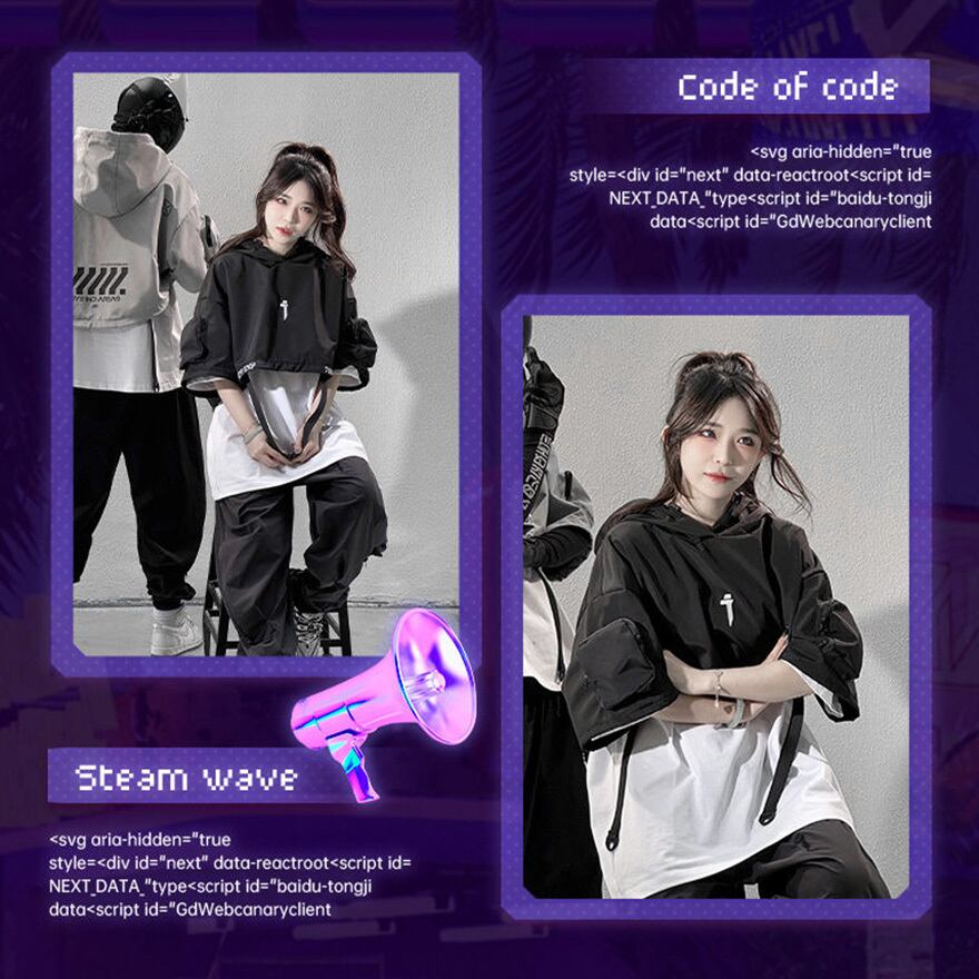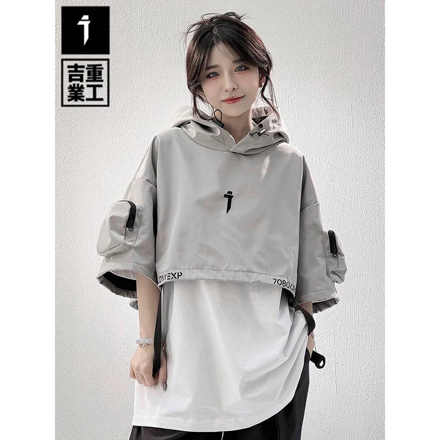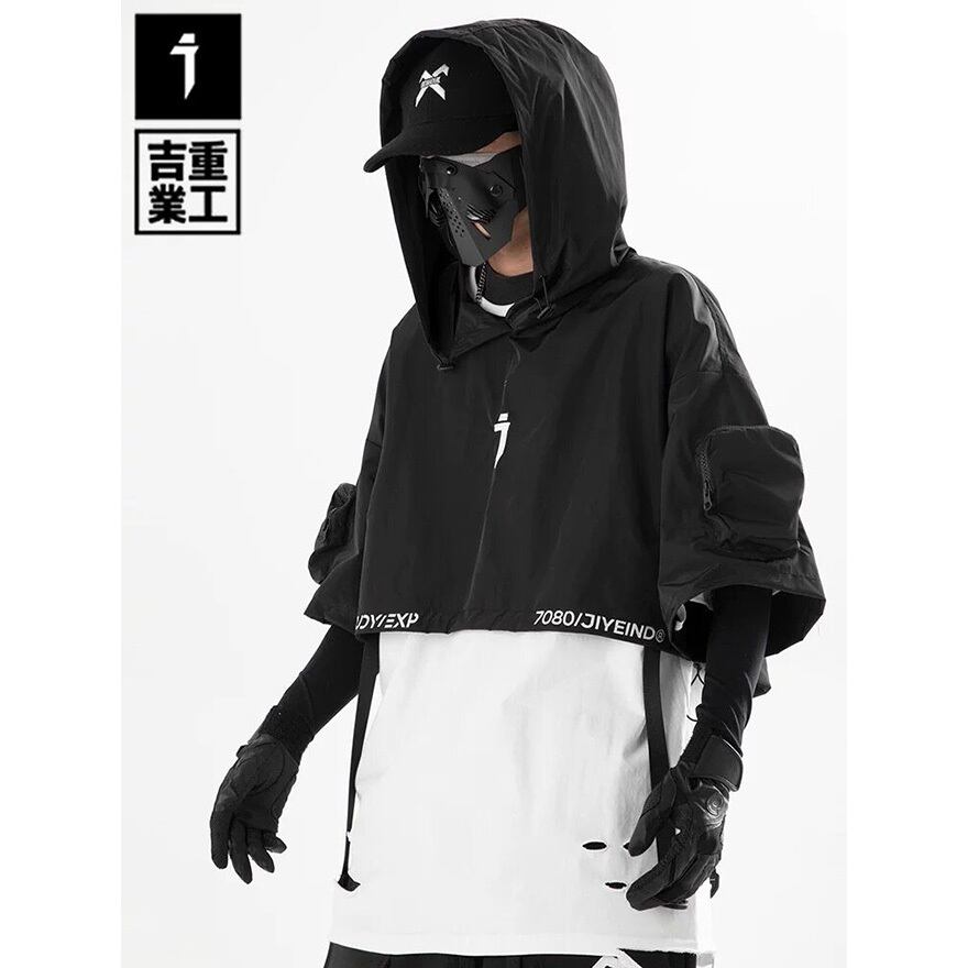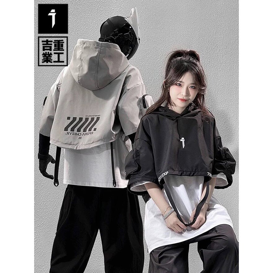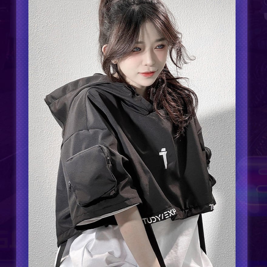 クロップド丈とテック感あふれるディテールが特徴で、ライブ衣装に最適です。