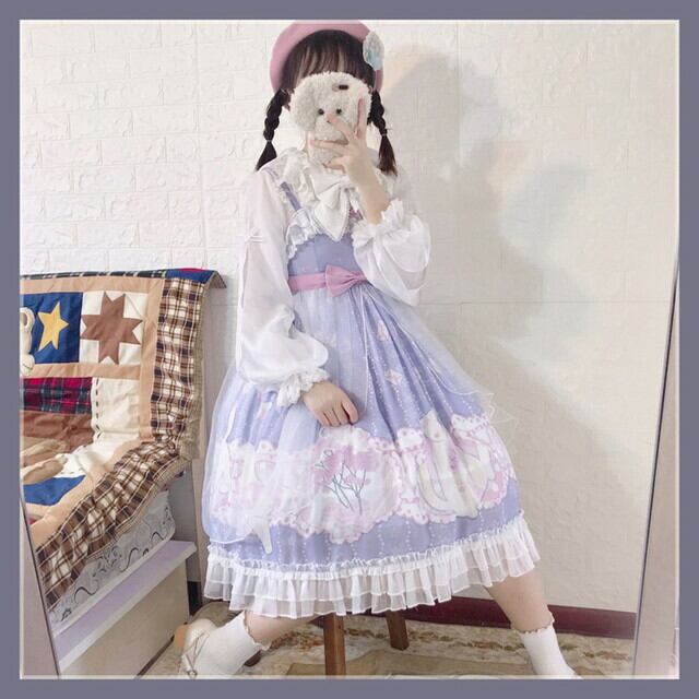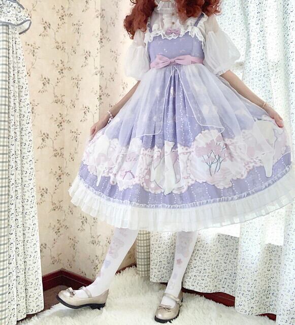 サブカル 服 地雷系 通販 ゴスロリ ワンピース 甘ロリ 袖コン フリル 天使 夢可愛い 子猫 花柄 リボン レース ラブリー ロリータ ゴシック ロリータ