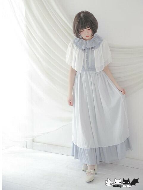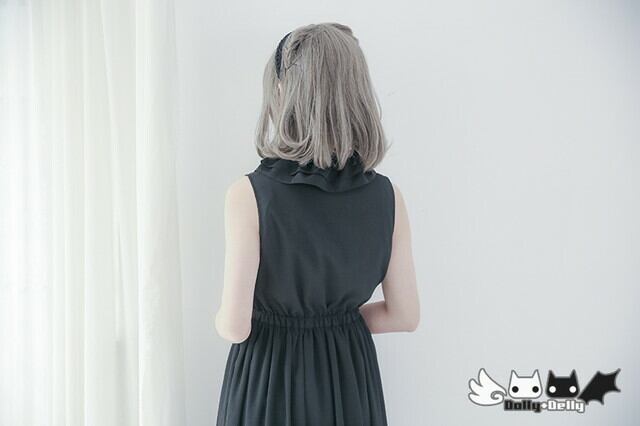病み深いハイウエストの黒ワンピースと夢可愛い天使のワンピース