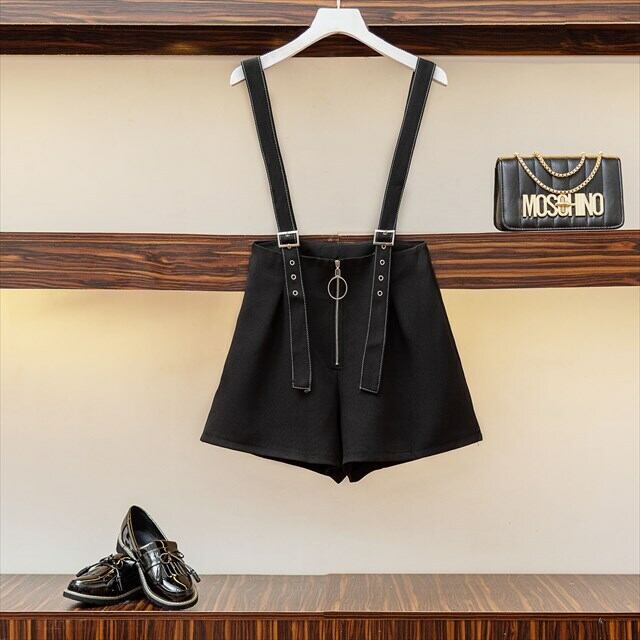 サブカル 服 地雷系 通販 レディース オールインワン 上下セット ハーフパンツ 袖コン カジュアル 可愛め ブラック 袖コン
