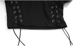 サブカル 服 地雷系 通販 Tシャツ ショート丈 へそ出し サイズストラップ 半袖 小悪魔的 ゴシック ブラック オルチャン