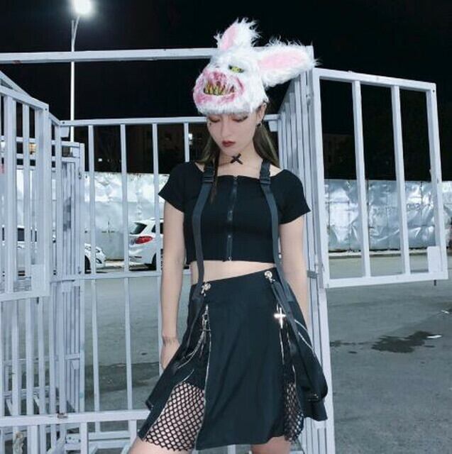 サブカル 服 地雷系 通販 ショートスカート ミニスカート サイドチェーン 十字架 ゴスロリ V系 闇かわいい 小悪魔 ブラック オルチャン