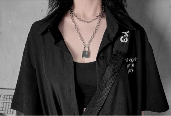 エッジの効いた黒ネクタイが病み可愛いシャツです。全体のシルエットがより引き締まってエッジの効いたブラック、よりカジュアルモードなホワイトのゴスロリ系シャツです。
