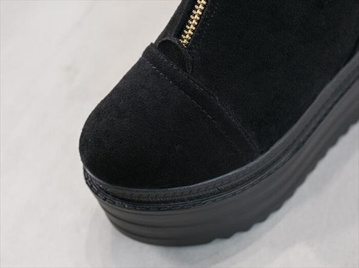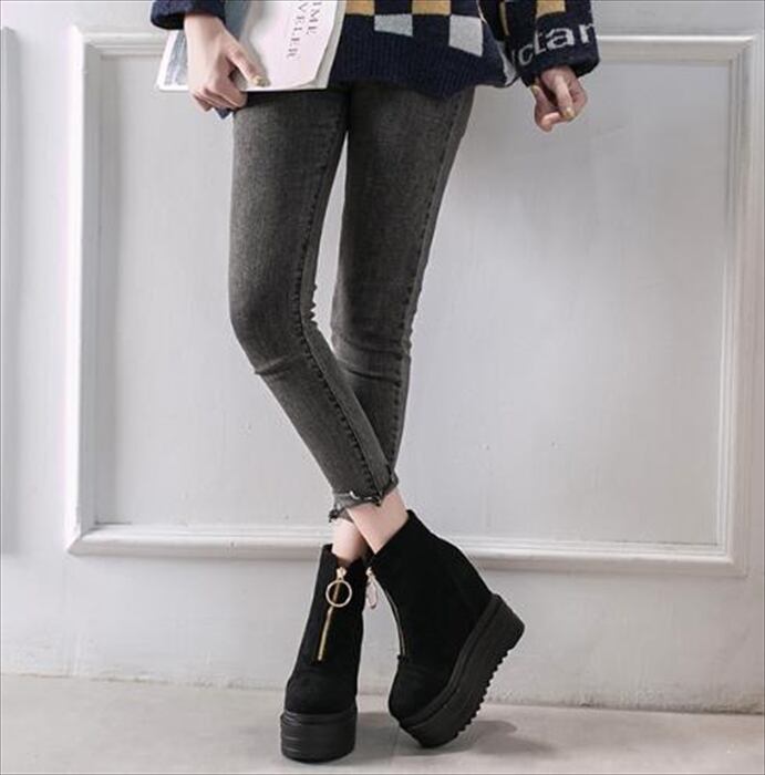 フロントZIPがおしゃれなスエード厚底ブーツです。厚底プラットフォームなので厚底初心者にもおすすめのブーツです。
