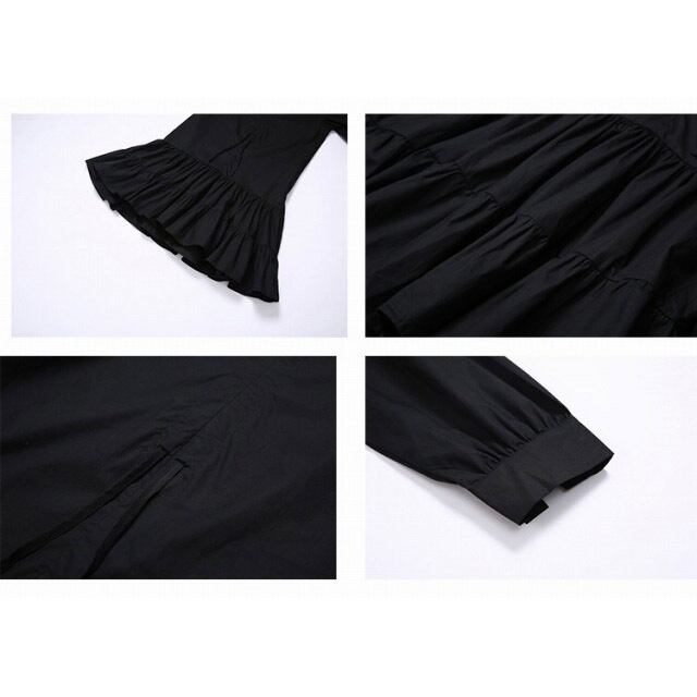 サブカル 服 地雷系 通販 ゴシック モノトーン シャツワンピース 変形 ギャザー フリル フレア 大人可愛い おしゃれ