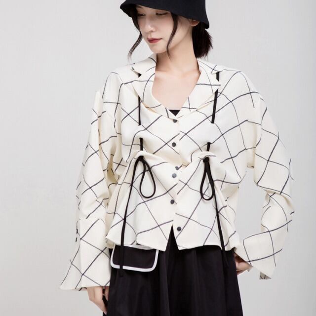 サブカル 服 地雷系 通販 ゴシック モノトーン シャツ ブラウス チェック柄 リボン デザイン シンプル おしゃれ 上品
