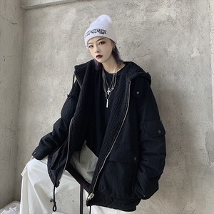 サブカル 服 地雷系 通販 レディース ジャケット フード付き リバーシブル ユニセックス 長袖 ZIPアップ ブラック ゴスロリ もこもこ ビッグシルエット 暖かい ボア素材 ストリートカジュアル