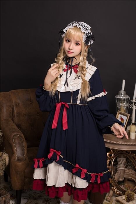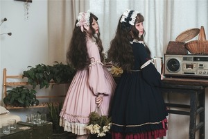 ちょっぴり病んでるかわいさがたまらないネックギャザーに蝶ネクタイがかわいいレトロなお嬢様系ワンピースです。