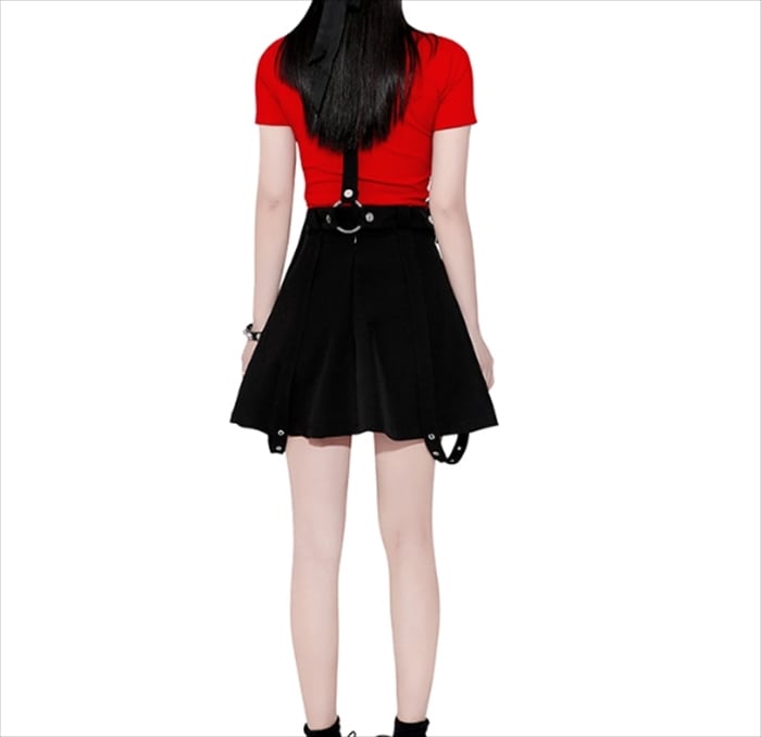 サブカル 服 地雷系 通販 スカート サスペンダー ダブルショルダー ベルト ゴスロリ ストラップ スカート