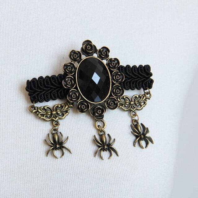 サブカル 服 地雷系 通販 闇かわいい ゴシック ブローチ 黒バラ スパイダー 蜘蛛 ゴスロリ 闇かわいい