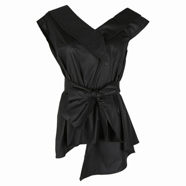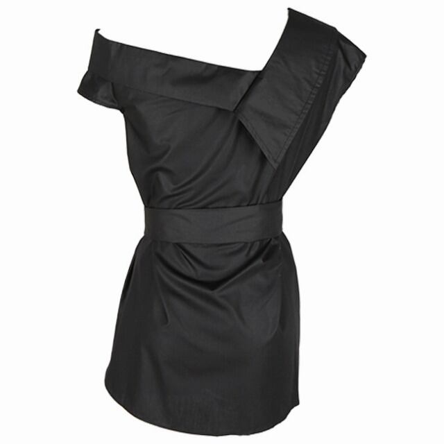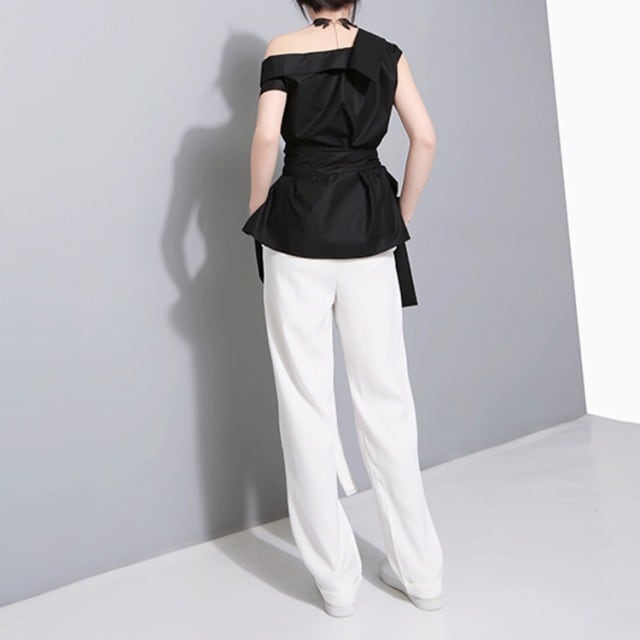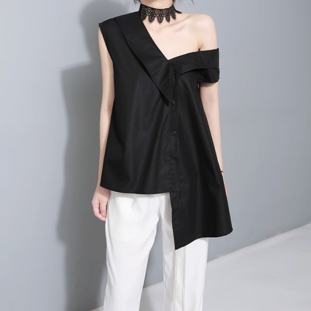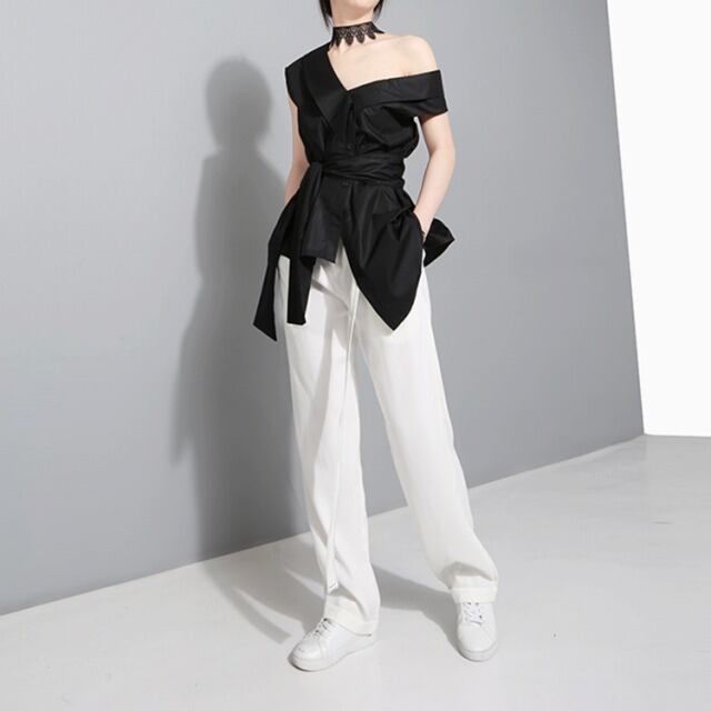 サブカル 服 地雷系 通販 ゴシック モノトーン ブラウス ワンショル アシメ リボン 変形 デザイン おしゃれ 上品