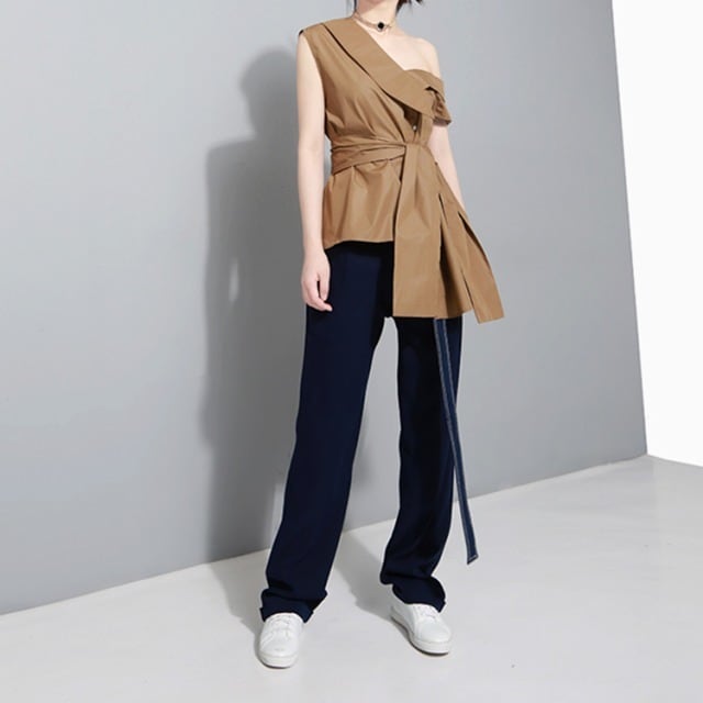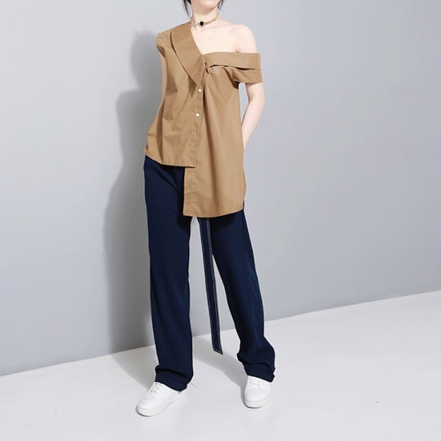 ワンショルデザインが上品なフェミニン感を演出してくれるトップスです。