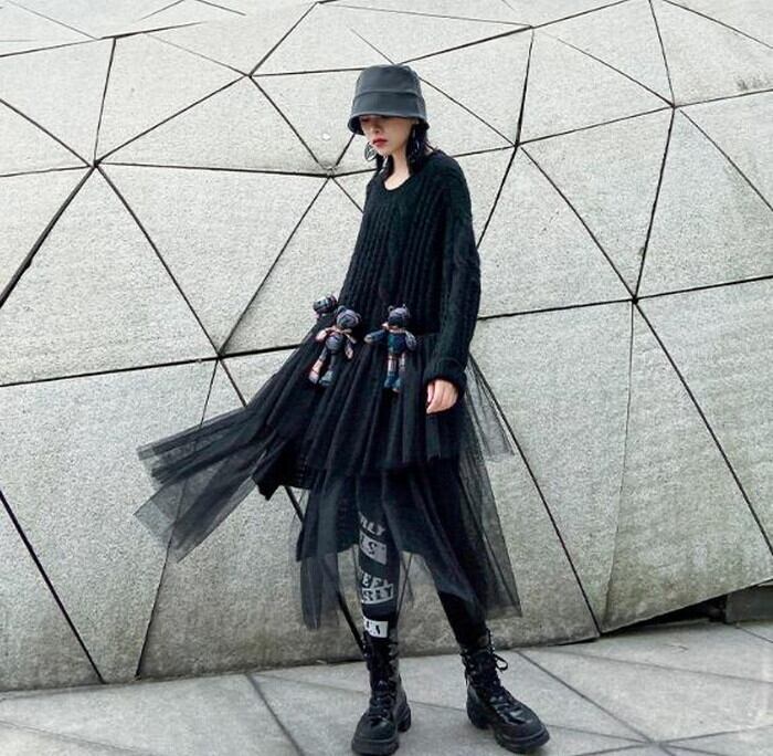 サブカル 服 地雷系 通販 ゴスロリ ワンピース 黒 闇かわいい クマ 冥獣 アシンメトリー スカート 異色