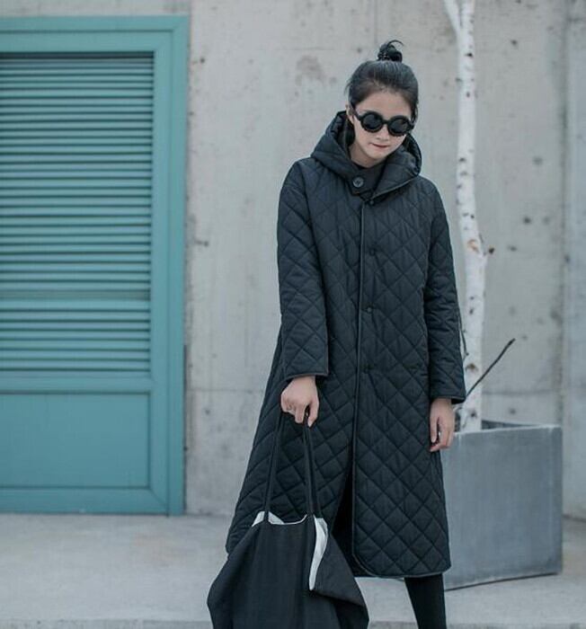 サブカル 服 地雷系 通販 秋冬 アウター 黒コート キルティング コート ハイウエスト フード付き ビッグシルエット