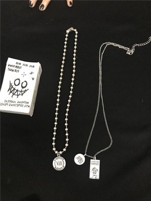 コインのようなペンダントに鑑札風のダブルブローチです。ゴスロリTシャツに合わせてゴスロリコーデをグレードアップしてくれます。