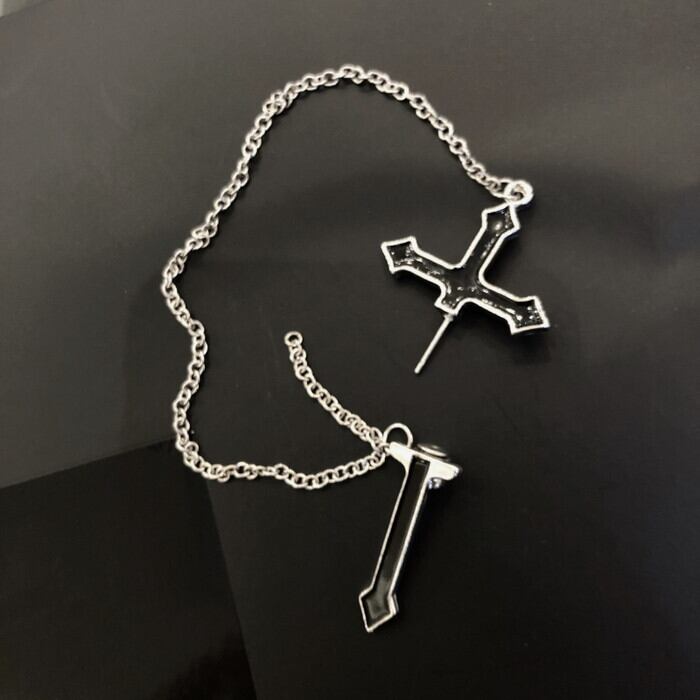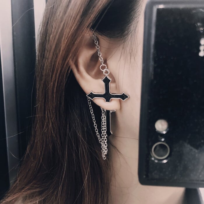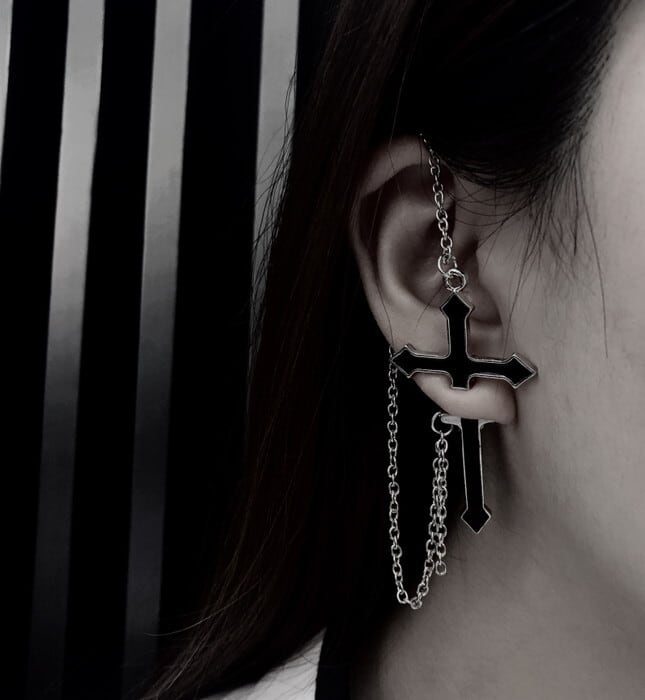 黒十字架が闇深いゴスロリピアスです。病み可愛いゴスロリのマストアクセサリーとしておすすめ
