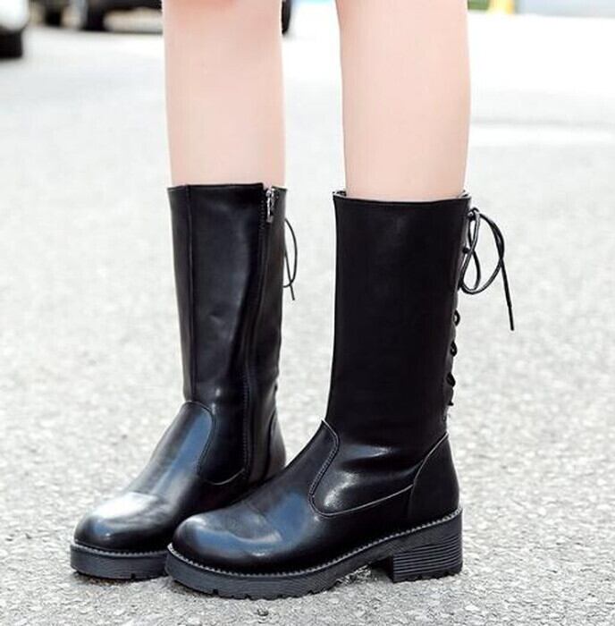サイドZIPにバックレースアップがおしゃれなデザインブーツです。ヒール高4cmなので歩きやすいミドルブーツです。