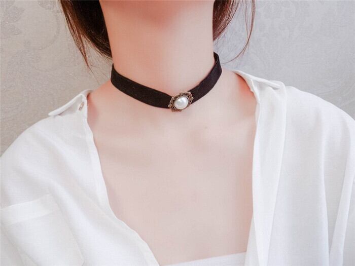 ブラックチョーカーに大きなフェイクパールが病み可愛いチョーカーです。