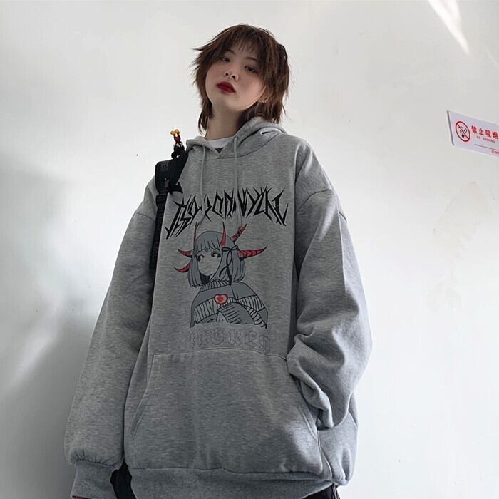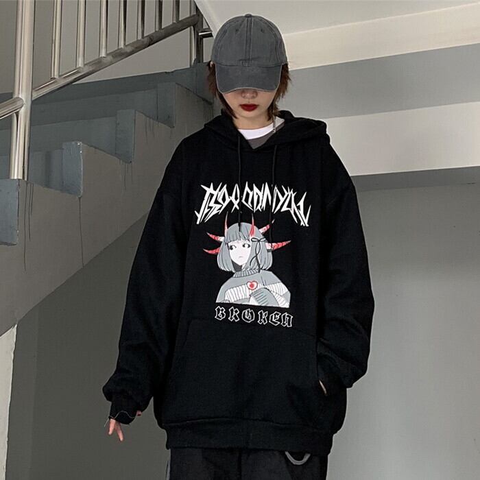 サブカル 服 地雷系 通販 闇かわいい パーカー ゴシック系 鬼 悪魔 ユニセックス 病み深い 黒 灰 ゴシック オルチャン
