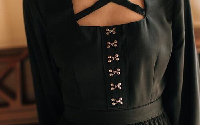 病み可愛いシックなゴシック黒ワンピ。チョーカーにネッククロスが病み深いワンピースです。