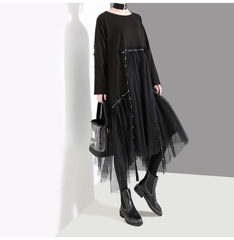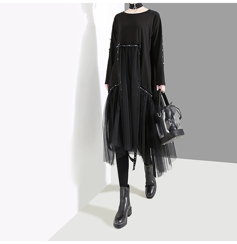 サブカル 服 地雷系 通販 モード系 ワンピース シフォン レース ハイウエスト フレアスカート ゴシック 20代 30代 オルチャン