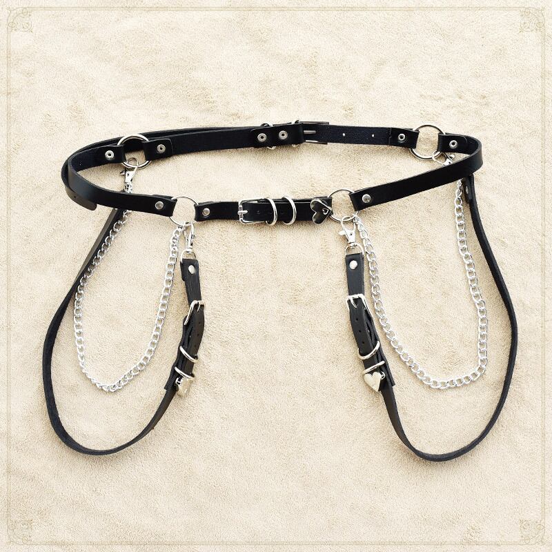 両サイドのダブルチェーンにスリムなPUレザーが病み可愛いベルトです。黒シャツと合わせるだけでハイウエストと病み可愛さをプラスしてくれるアイテムです。